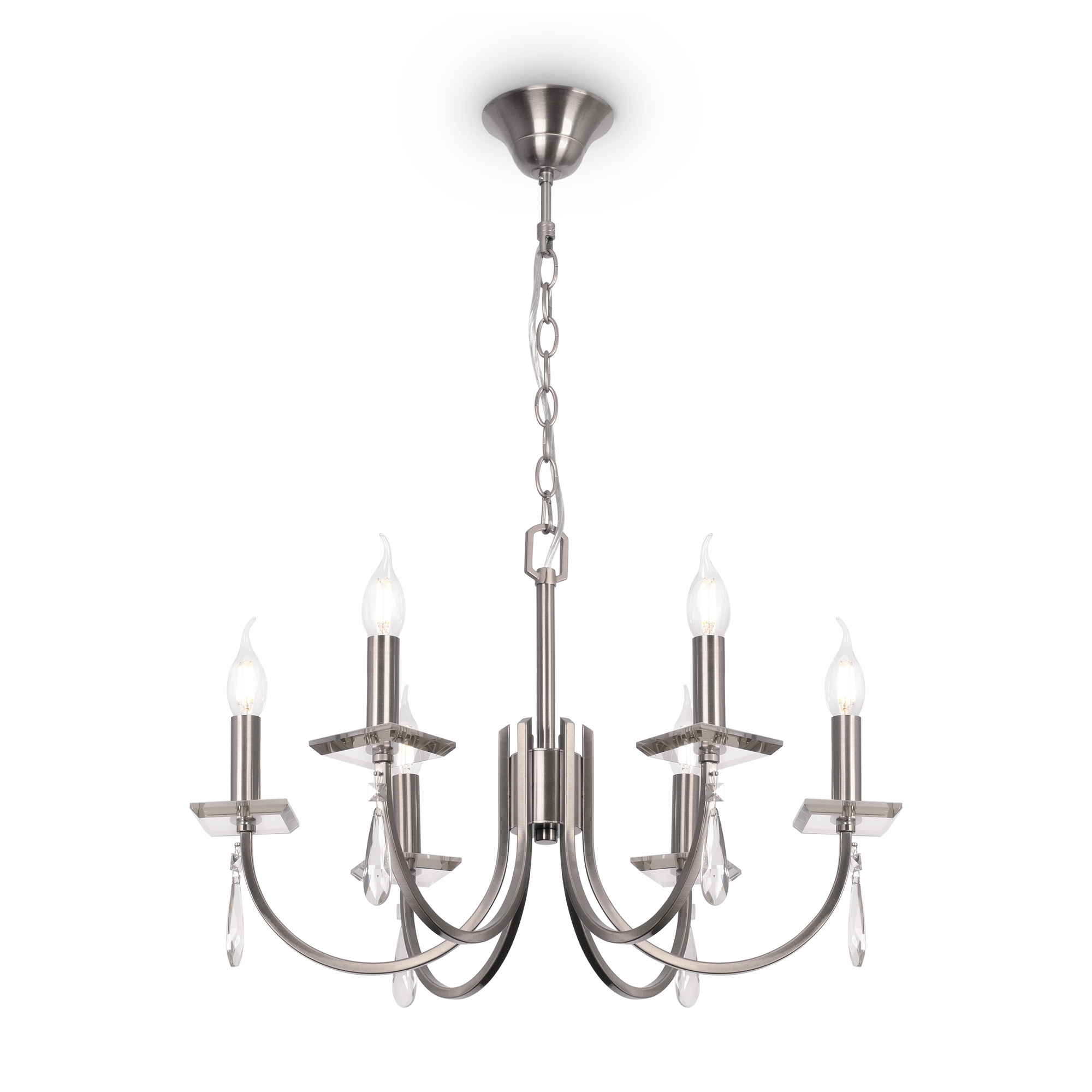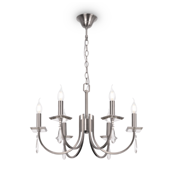 Допускается отличие страны-изготовителя, указанной в характеристиках. Линии производства могут находиться в нескольких государствах. Это не влияет на качество изготовления товара: все заводы данного бренда работают по общим стандартам, а готовые изделия проходят соответствующий контроль.Германия Коллекция Forte ЦветЦвет арматуры Никель Цвет Никель Материал арматуры Металл РазмерыВысота (мм) 1423 Диаметр (мм) 580 Высота минимальная (мм) 598 Ширина (мм) 580 ЭлектрикаКоличество ламп (шт) 6 Цоколь E14 Лампочки в комплекте Нет в комплекте Мощность лампы (Вт) 40 Напряжение (В) 220 Дополнительная информацияСпособ крепления Крюк Степень защиты (IP) IP20 Вес (Кг) 3,22 Тип подвеса На цепи -