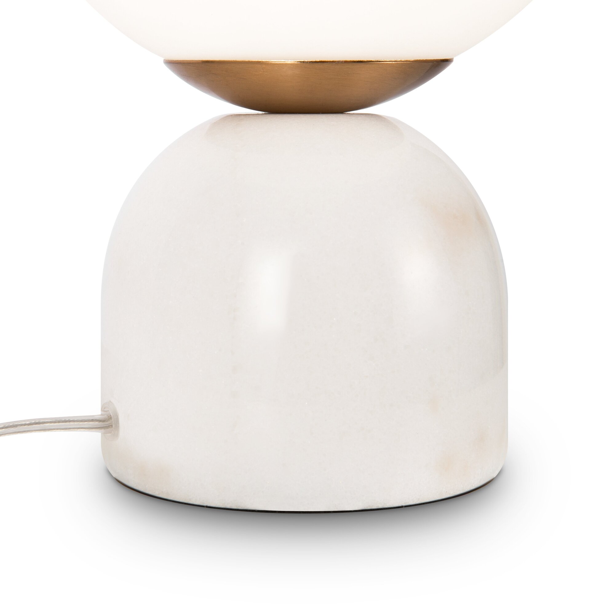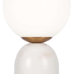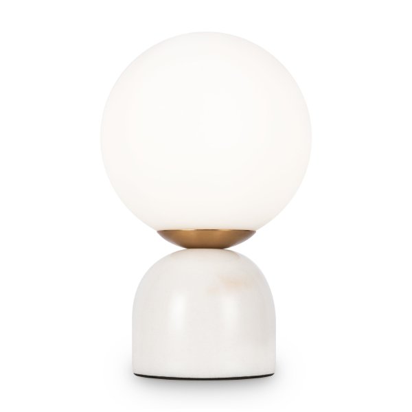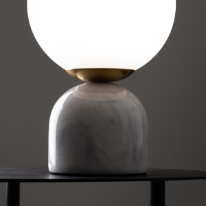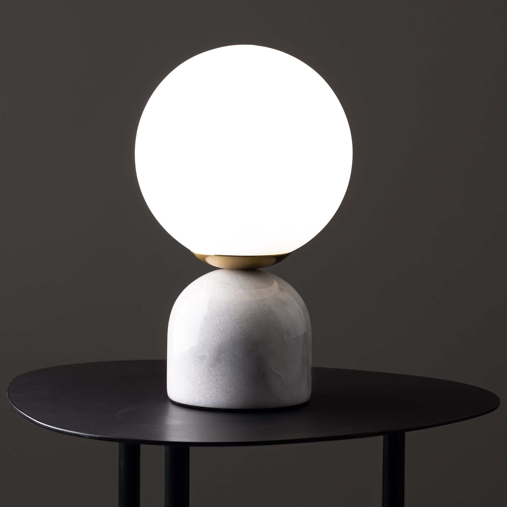 Материал основания - натуральный мрамор с уникальным рисунком. Цвета - белый, черный. Шаровидный плафон. Функция touch-dimming позволяет регулировать яркость света. Источник света - лампа с цоколем E14.