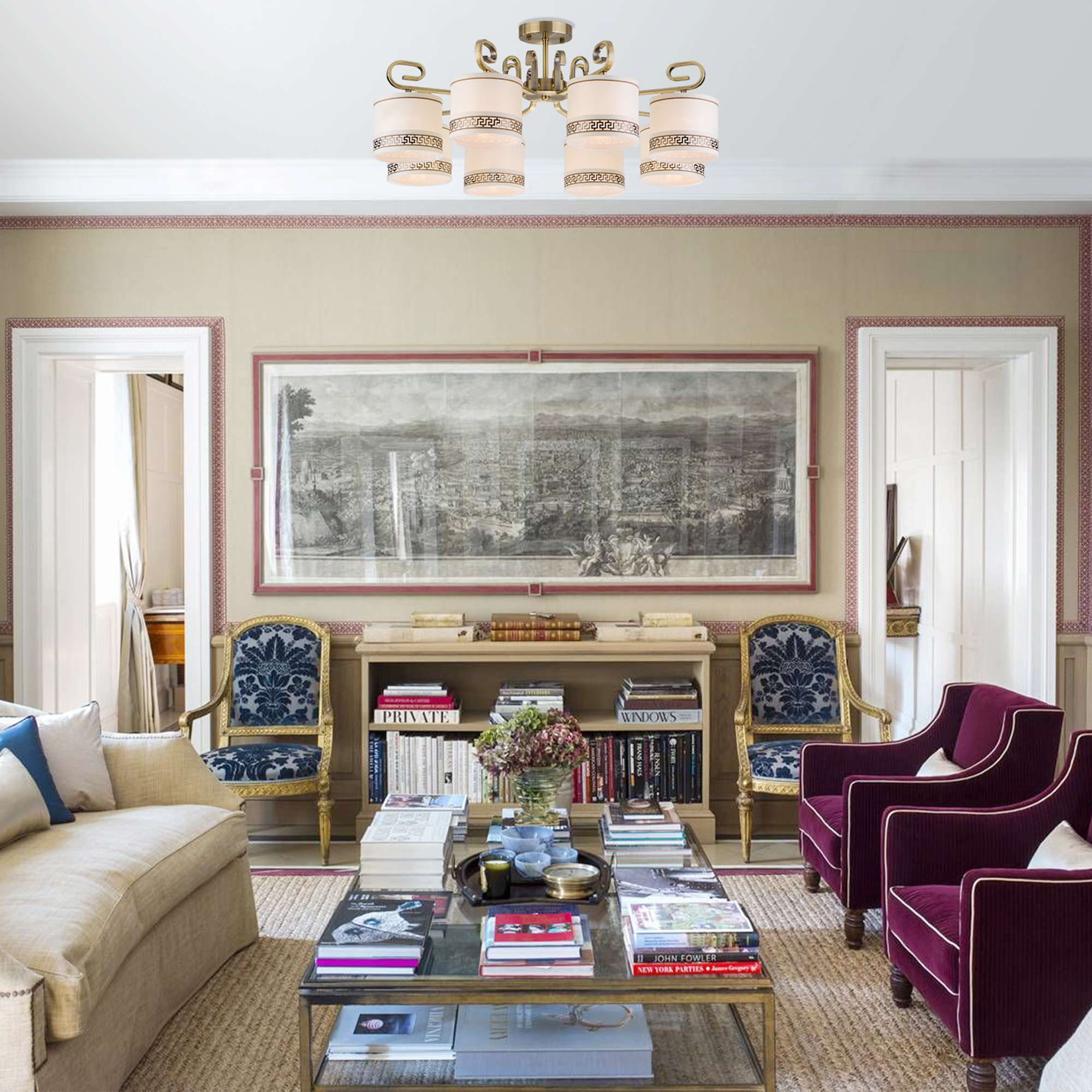 Допускается отличие страны-изготовителя, указанной в характеристиках. Линии производства могут находиться в нескольких государствах. Это не влияет на качество изготовления товара: все заводы данного бренда работают по общим стандартам, а готовые изделия проходят соответствующий контроль.Китай Коллекция Frangia ЦветЦвет арматуры Античная бронза Цвет Бронза Материал арматуры Металл Цвет плафона Белый Материал плафона Ткань РазмерыВысота (мм) 320 Длина (мм) 730 Ширина (мм) 730 ЭлектрикаКоличество ламп (шт) 8 Цоколь E14 Мощность лампы (Вт) 40 Напряжение (В) 220 Площадь освещения 21 Дополнительная информацияСпособ крепления Планка Степень защиты (IP) IP20 -