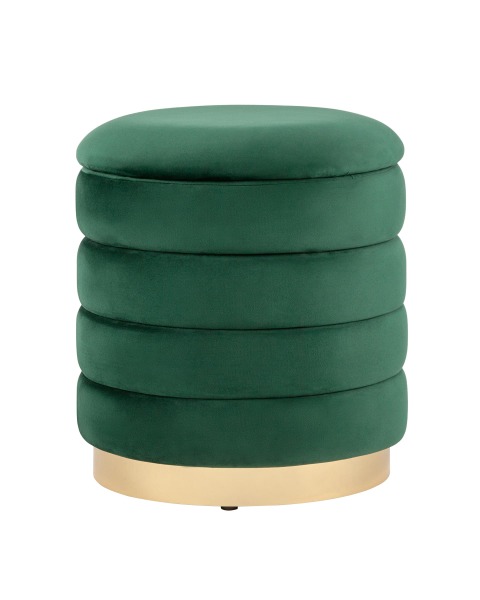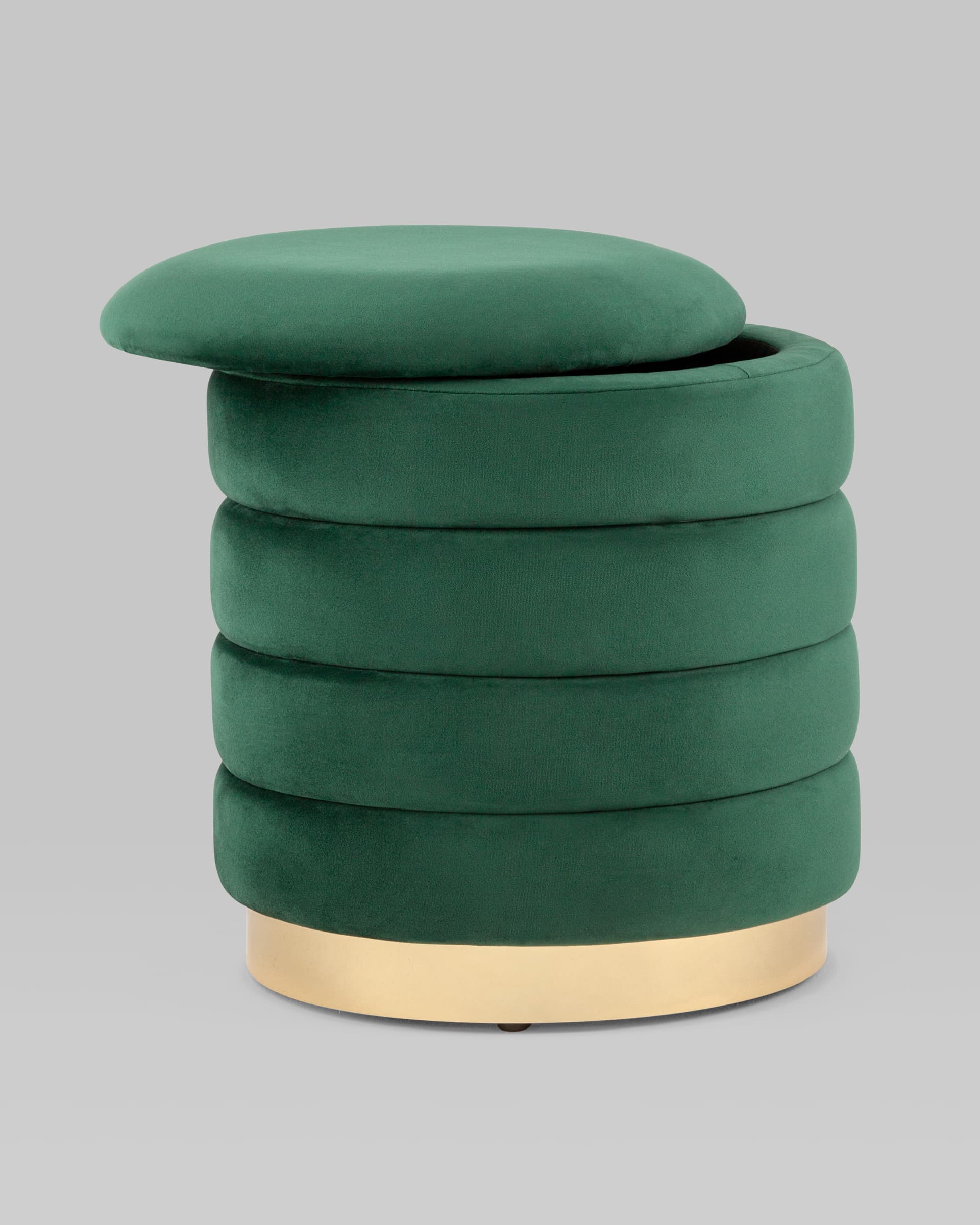 Пуф с ящиком Франсис велюр зелёный с декорированным основанием