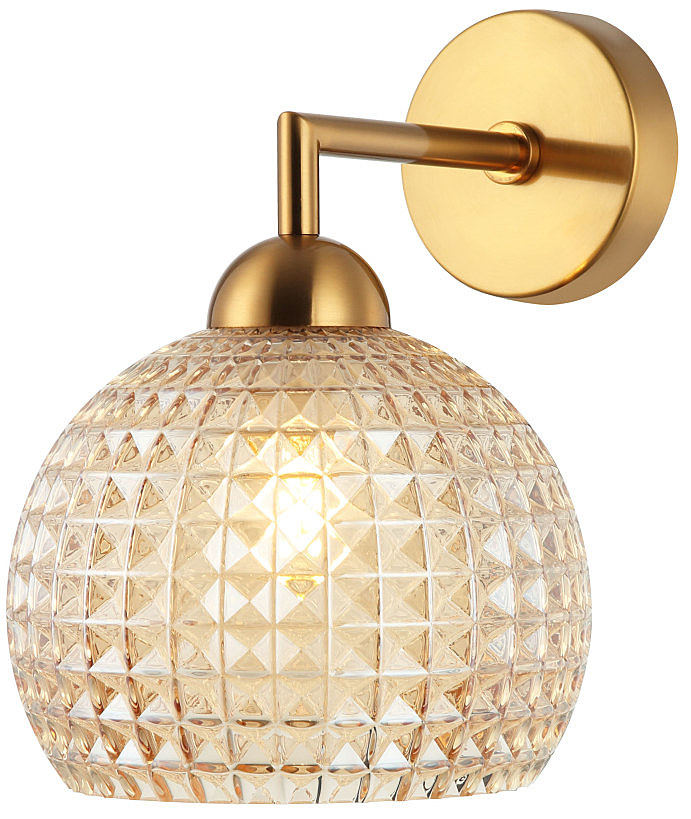 Светильник настенный 2118/03/01W Stilfort серии Frency выполнен в стиле модерн. Арматура изготовлена из окрашенного металла в цветовом исполнении "золото". Плафон из текстурированного стекла.