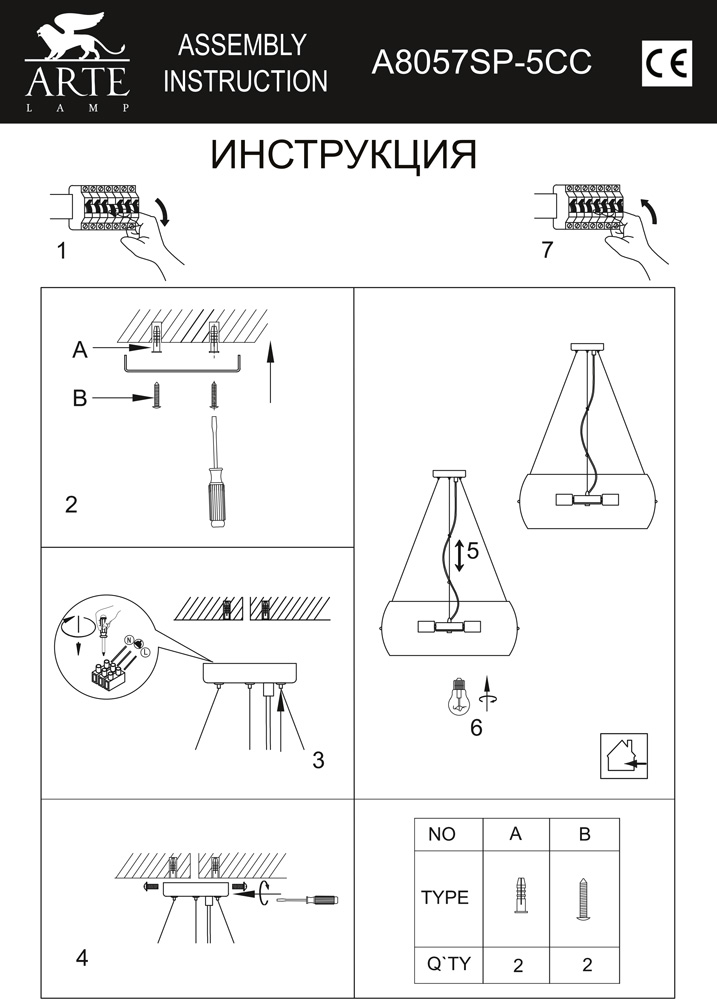 Производитель Arte Lamp Артикул A8057SP-5CC Страна