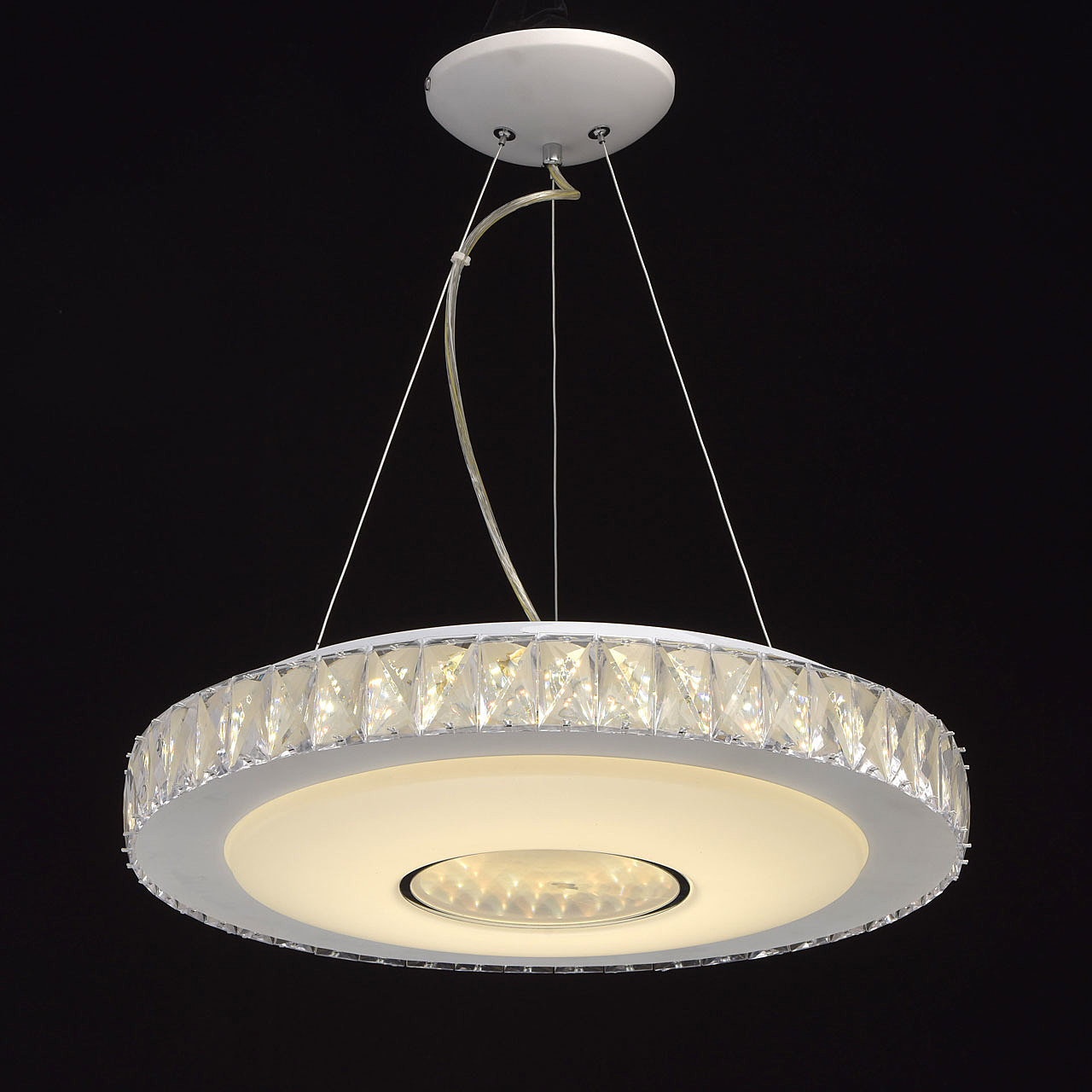 Стильный дизайн и гламурный блеск люстры из коллекции "Фризанте" приковывает взгляды. Белое металлическое основание дополнено широким акриловым плафоном того же оттенка. Он украшен объемным декором из крупного прозрачного хрусталя. Помимо этого, светильник прекрасно оснащен технически: например, можно легко менять яркость освещения.