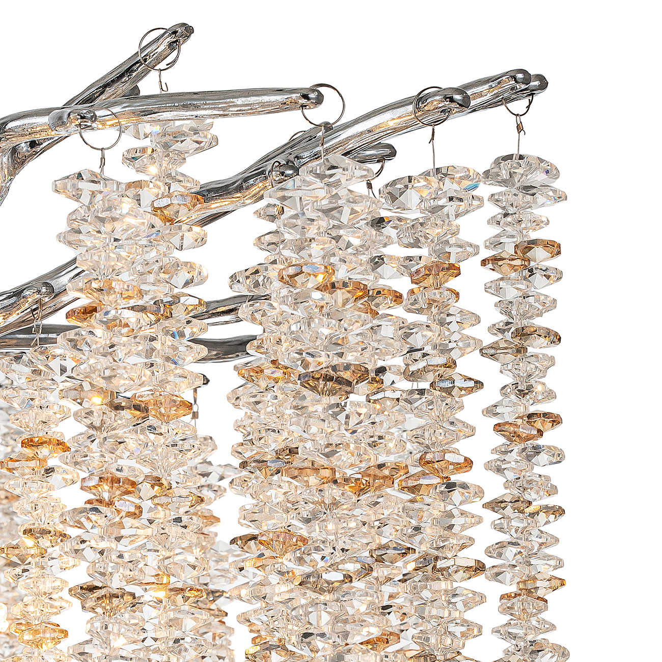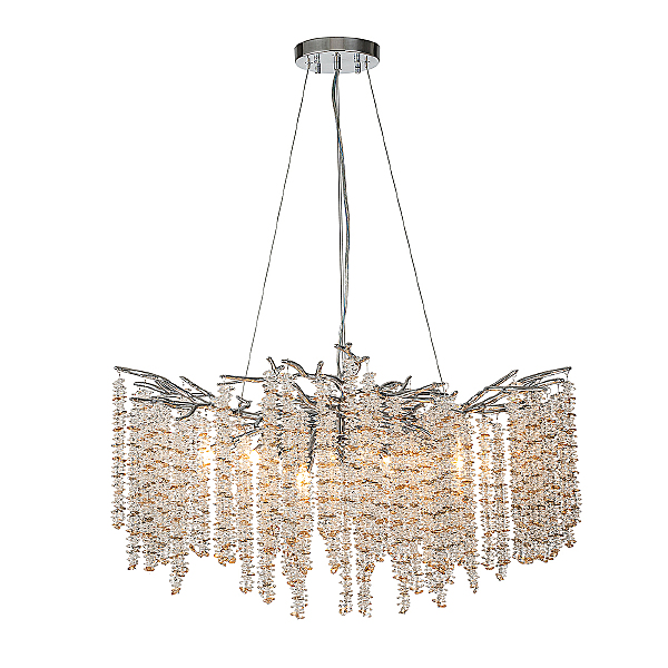 Серия FRUSCIO воплощает величественную симфонию природы. Изящно повторяя формы тонких веточек деревьев, эти светильники наполняют пространство своей неподдельной природной красотой. Нежное сияние, истекающее от кроны хрустальных листьев, мелодичный шелест, словно шепот ветра, - все это наполняет каждое мгновение пленительной серенадой света и песней природы. Эти светильники станут мостом между вашим интерьером и природой, даря вам возможность ощутить ее ласку и красоту прямо внутри вашего дома. Размер 760*760*475/1400 Мощность G9 10xMAX 33W Цвет ХРОМ/ПРОЗРАЧНЫЙ/ЯНТАРНЫЙ Материал МЕТАЛЛ/ХРУСТАЛЬ