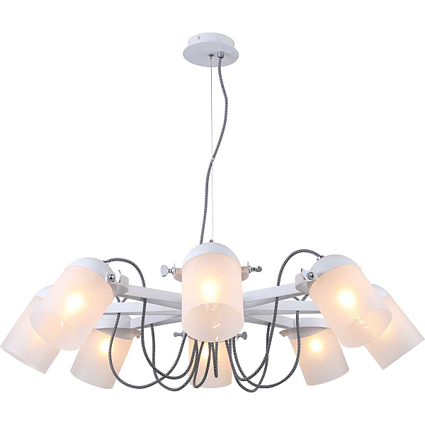 Люстра подвесная 2014/01/08P Stilfort серии Fuoco - креативная модель в стиле модерн. Арматура изготовлена из метала двух цветов - "белый" и "хром". Плафоны люстры выполнены из стекла, прозрачные.