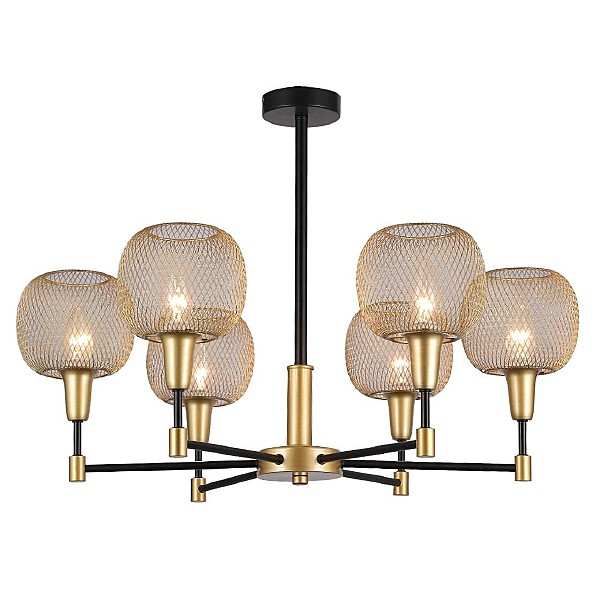 Потолочная люстра G11061/6BK+GD GD от бренда Gerhort. Каркас выполнен из материала металл, цвет черный, золото. Плафоны (светорассеиватели) выполнены из материала металл, цвет золото. Цоколь E14 рассчитан на лампы максимальной мощности до 60 Вт, а максимальная площадь освещения составит до 13 м.