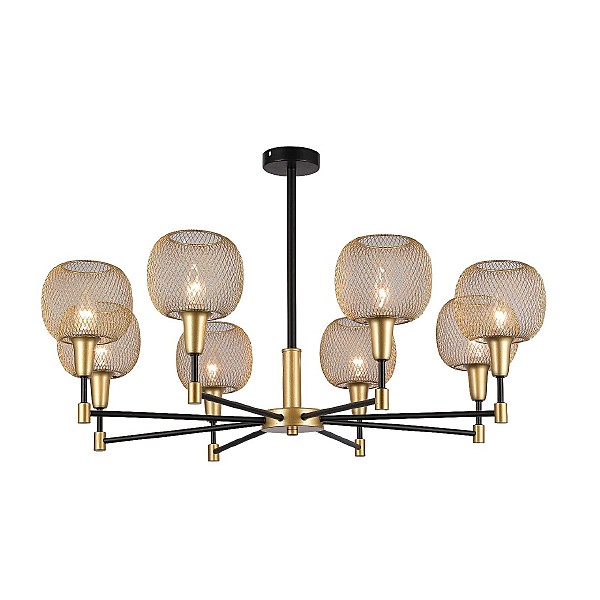 Потолочная люстра G11061/8BK+GD GD от бренда Gerhort. Каркас выполнен из материала металл, цвет черный, золото. Плафоны (светорассеиватели) выполнены из материала металл, цвет золото. Цоколь E14 рассчитан на лампы максимальной мощности до 60 Вт, а максимальная площадь освещения составит до 18 м.