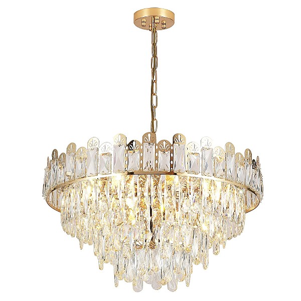 Люстра хрустальная G21077/10FGD+CL от бренда Gerhort. Каркас выполнен из материалов металл и хрусталь; цвета: золото и прозрачный. Цоколь E14 рассчитан на лампы максимальной мощности до 60 Вт, а максимальная площадь освещения составит до 22 м.