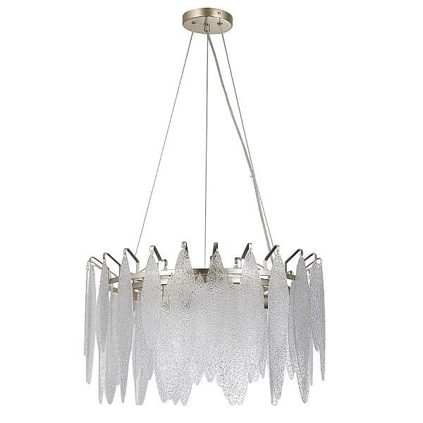 Люстра хрустальная G22027/6CPGD+WT от бренда Gerhort. Каркас выполнен из материала металл, цвет золото шампань. Плафоны (светорассеиватели) выполнены из материала стекло, цвет белый. Цоколь E14 рассчитан на лампы максимальной мощности до 40 Вт, а максимальная площадь освещения составит до 13 м.