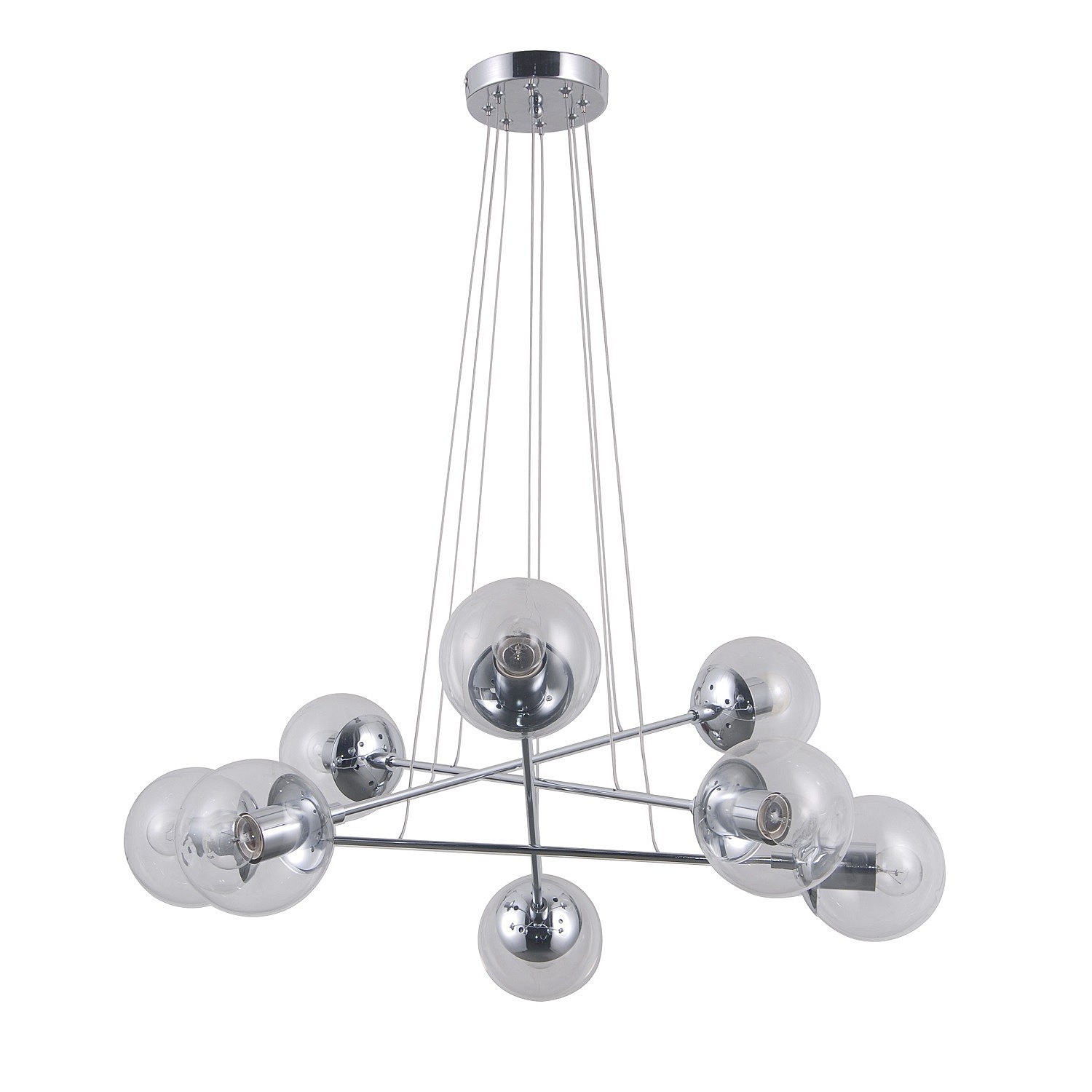 Допускается отличие страны-изготовителя, указанной в характеристиках. Линии производства могут находиться в нескольких государствах. Это не влияет на качество изготовления товара: все заводы данного бренда работают по общим стандартам, а готовые изделия проходят соответствующий контроль.Германия Коллекция G31074 ЦветЦвет арматуры Хром Цвет Хром Материал арматуры Металл Цвет плафона прозрачный Материал плафона Стекло РазмерыВысота (мм) 900 Длина (мм) 750 Высота минимальная (мм) 350 Ширина (мм) 750 ЭлектрикаКоличество ламп (шт) 8 Цоколь E27 Тип лампы Накаливания Лампочки в комплекте Нет в комплекте Мощность лампы (Вт) 40 Площадь освещения 18 Дополнительная информацияСтепень защиты (IP) IP20 Место установки на потолок Диммирование Нет Тип подвеса На тросах -
