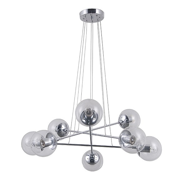 Подвесная люстра G31074/8CR CL от бренда Gerhort. Каркас выполнен из материала металл, цвет хром. Плафоны (светорассеиватели) выполнены из материала стекло, цвет прозрачный. Цоколь E27 рассчитан на лампы максимальной мощности до 40 Вт, а максимальная площадь освещения составит до 18 м.
