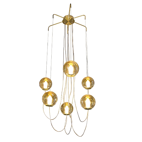 Подвесной светодиодный светильник G31093/6SGD в современном стиле от бренда Gerhort. Каркас выполнен из материала металл, цвет золото. Плафоны (светорассеиватели) выполнены из материала стекло, цвет янтарный. Встроенные LED модули на 36 Вт осветят до 14 м. Свет теплый, мягкий.
