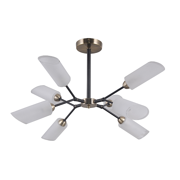 Потолочный светильник G31115/8AB+BK WT от бренда Gerhort. Каркас выполнен из материала металл; цвета: античная бронза и черный. Плафоны (светорассеиватели) выполнены из материала стекло, цвет белый. Цоколь E14 рассчитан на лампы максимальной мощности до 40 Вт, а максимальная площадь освещения составит до 18 м.