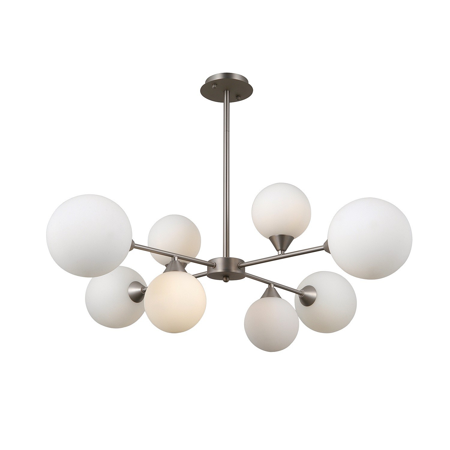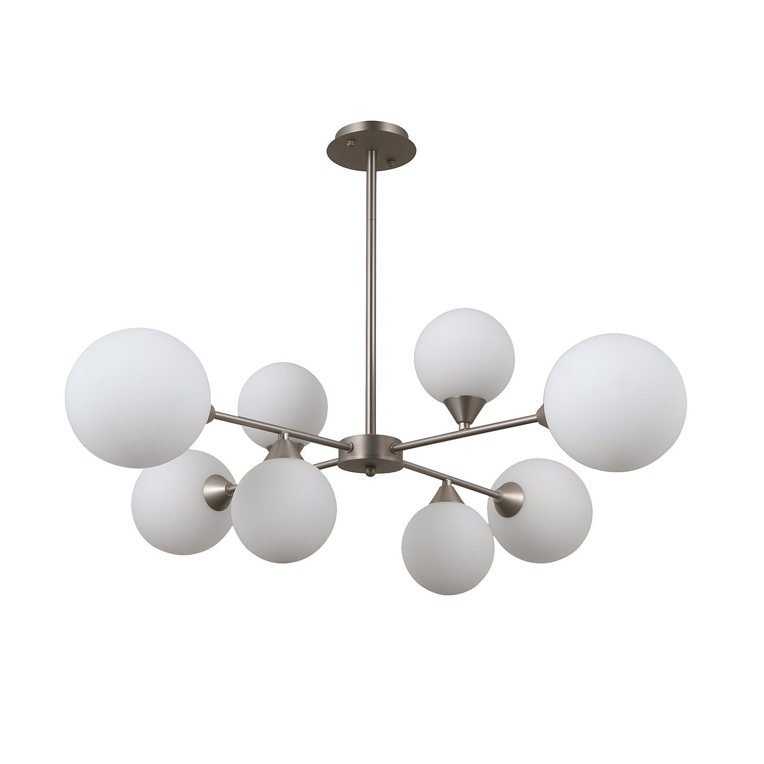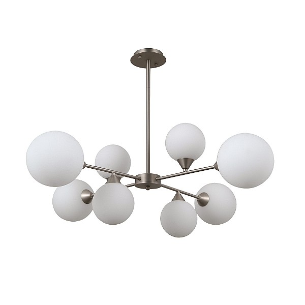 Потолочная люстра G31206/8SN WT от бренда Gerhort. Каркас выполнен из материала металл, цвет сатин. Плафоны (светорассеиватели) выполнены из материала стекло, цвет белый. Цоколь G9 рассчитан на лампы максимальной мощности до 5 Вт, а максимальная площадь освещения составит до 8 м.