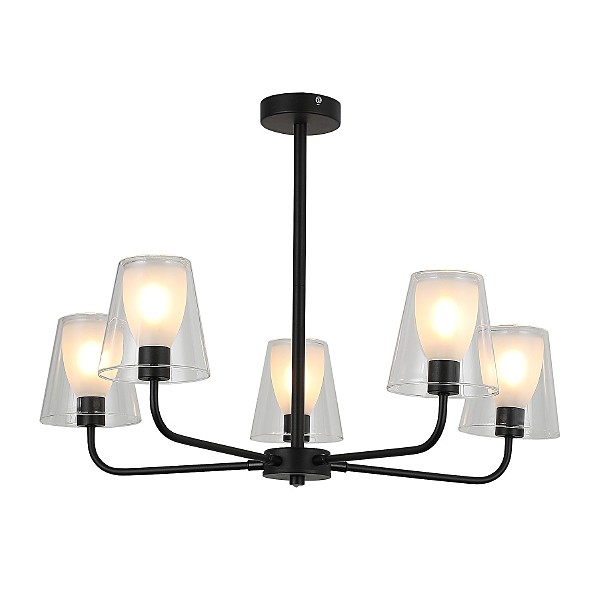 Потолочный светильник G31354/5BK CL от бренда Gerhort. Каркас выполнен из материала металл, цвет черный. Плафоны (светорассеиватели) выполнены из материала стекло, цвет прозрачный. Цоколь E14 рассчитан на лампы максимальной мощности до 60 Вт, а максимальная площадь освещения составит до 12 м.