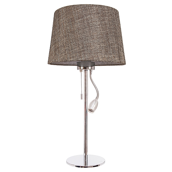 Настольная лампа G32012/1T CR CF от бренда Gerhort. Каркас выполнен из материала металл, цвет хром. Плафон (светорассеиватель) выполнен из материала текстиль, цвет коричневый. Цоколь E27 рассчитан на лампы максимальной мощности до 40 Вт, а максимальная площадь освещения составит до 2 м.