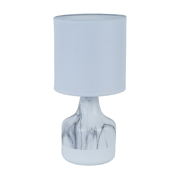 Настольная лампа G32160/1T WT+LMR WT от бренда Gerhort. Каркас выполнен из материала керамика; цвета: белый и мраморный. Плафон (светорассеиватель) выполнен из материала текстиль, цвет белый. Цоколь E14 рассчитан на лампы максимальной мощности до 40 Вт, а максимальная площадь освещения составит до 2 м.
