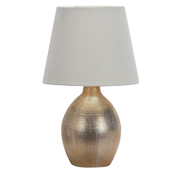 Настольная лампа G32211/1T GD WT от бренда Gerhort. Каркас выполнен из материала керамика, цвет золото. Плафон (светорассеиватель) выполнен из материала текстиль, цвет белый. Цоколь E14 рассчитан на лампы максимальной мощности до 40 Вт, а максимальная площадь освещения составит до 2 м.