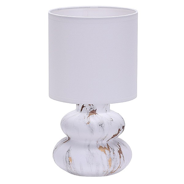 Настольная лампа G32217/1T WT+GD WT от бренда Gerhort. Каркас выполнен из материала керамика; цвета: светлый мрамор и золото. Плафон (светорассеиватель) выполнен из материала текстиль, цвет белый. Цоколь E14 рассчитан на лампы максимальной мощности до 40 Вт, а максимальная площадь освещения составит до 2 м.
