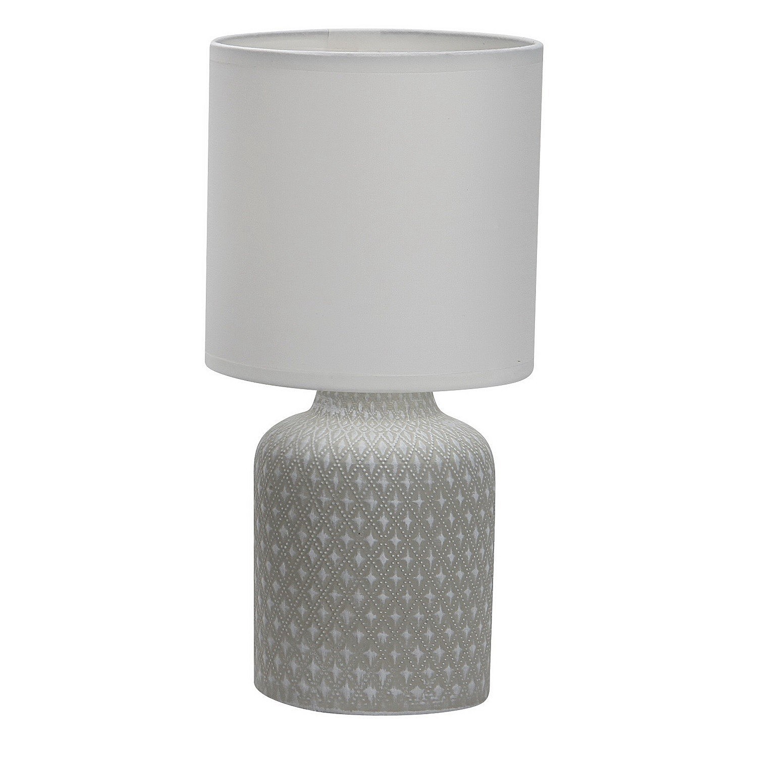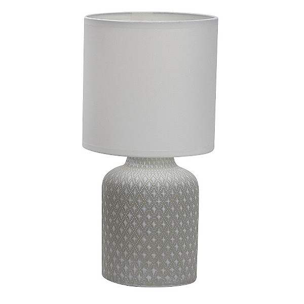 Настольная лампа G32221/1T GR WT от бренда Gerhort. Каркас выполнен из материала керамика, цвет серый. Плафон (светорассеиватель) выполнен из материала текстиль, цвет белый. Цоколь E14 рассчитан на лампы максимальной мощности до 40 Вт, а максимальная площадь освещения составит до 2 м.