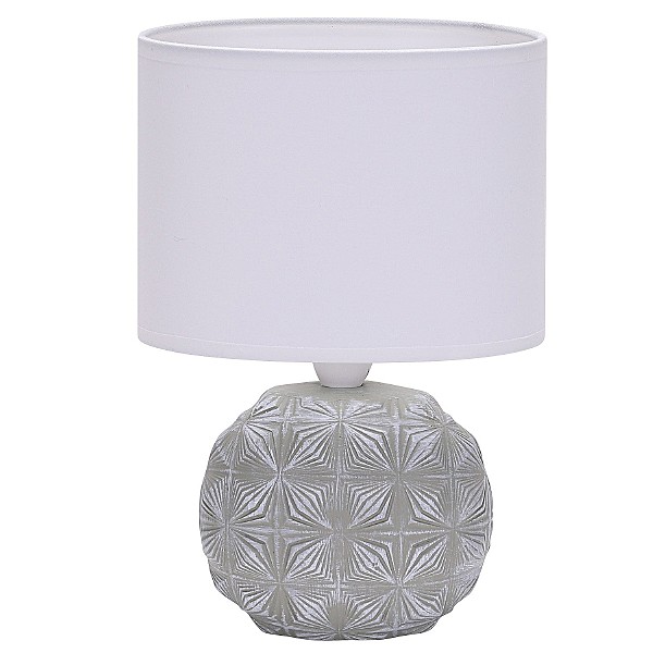 Настольная лампа G32225/1T GR WT от бренда Gerhort. Каркас выполнен из материала керамика, цвет серый. Плафон (светорассеиватель) выполнен из материала текстиль, цвет белый. Цоколь E14 рассчитан на лампы максимальной мощности до 40 Вт, а максимальная площадь освещения составит до 2 м.
