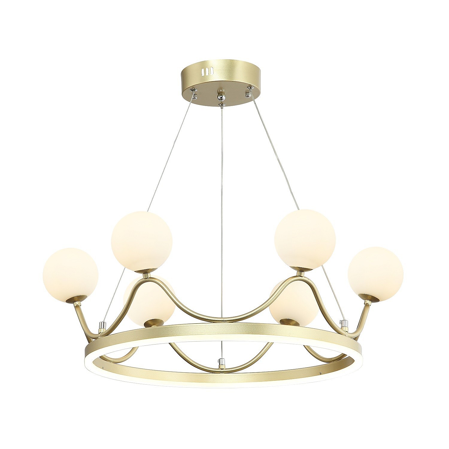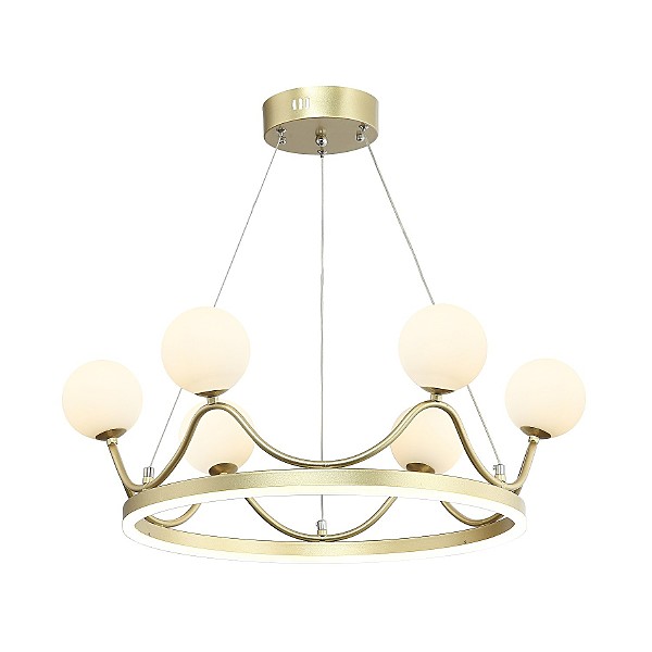 Светильник светодиодный G51241/6GD WT в современном стиле от бренда Gerhort. Каркас выполнен из материала металл, цвет золото. Плафон (светорассеиватель) выполнен из материала акрил, цвет белый. Встроенные LED модули на 30 Вт осветят до 14 м. Свет дневной.