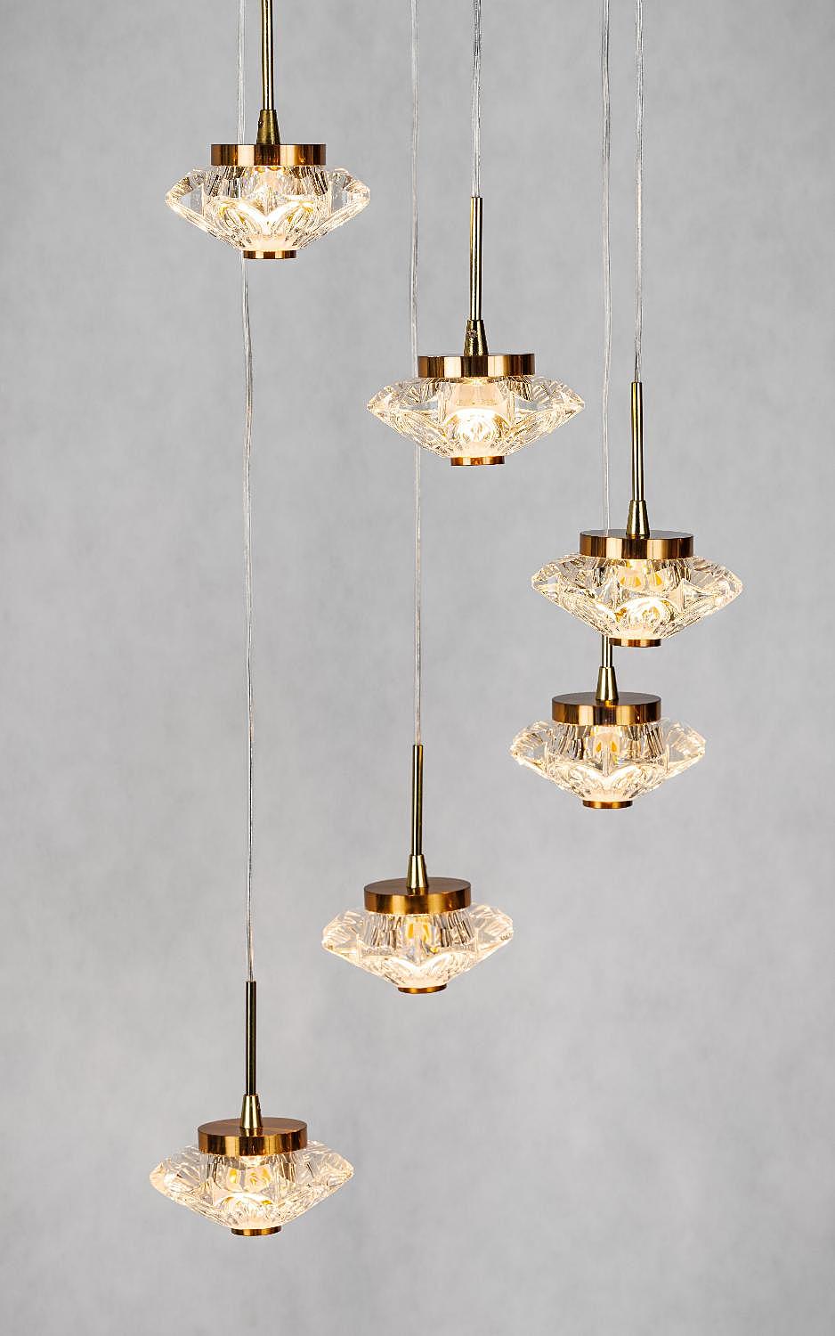 Подвесной светодиодный светильник G52142/6BRS CL в современном стиле от бренда Gerhort. Каркас выполнен из материала металл, цвет бронза. Плафоны (светорассеиватели) выполнены из материала стекло, цвет прозрачный. Встроенные LED модули на 18 Вт осветят до 4 м. Свет теплый, мягкий.