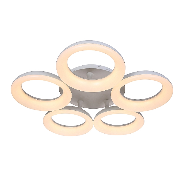 Потолочная светодиодная люстра G61177/5WT в современном стиле с пультом дистанционного управления от бренда Gerhort. Каркас выполнен из материала металл, цвет белый. Плафоны (светорассеиватели) выполнены из материала акрил, цвет белый. Встроенные LED модули на 90 Вт осветят до 13 м. Есть регулировка цветовой температуры и яркости.