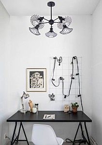 Допускается отличие страны-изготовителя, указанной в характеристиках. Линии производства могут находиться в нескольких государствах. Это не влияет на качество изготовления товара: все заводы данного бренда работают по общим стандартам, а готовые изделия проходят соответствующий контроль.Китай Коллекция Gala ЦветЦвет арматуры Черный Цвет Черный Материал арматуры Металл Цвет плафона Черный Материал плафона Металл РазмерыВысота (мм) 475 Длина (мм) 650 Ширина (мм) 650 ЭлектрикаКоличество ламп (шт) 5 Цоколь E27 Мощность лампы (Вт) 60 Напряжение (В) 220 Площадь освещения 15 Дополнительная информацияСпособ крепления Планка Степень защиты (IP) IP20 Вес (Кг) 2,1 -