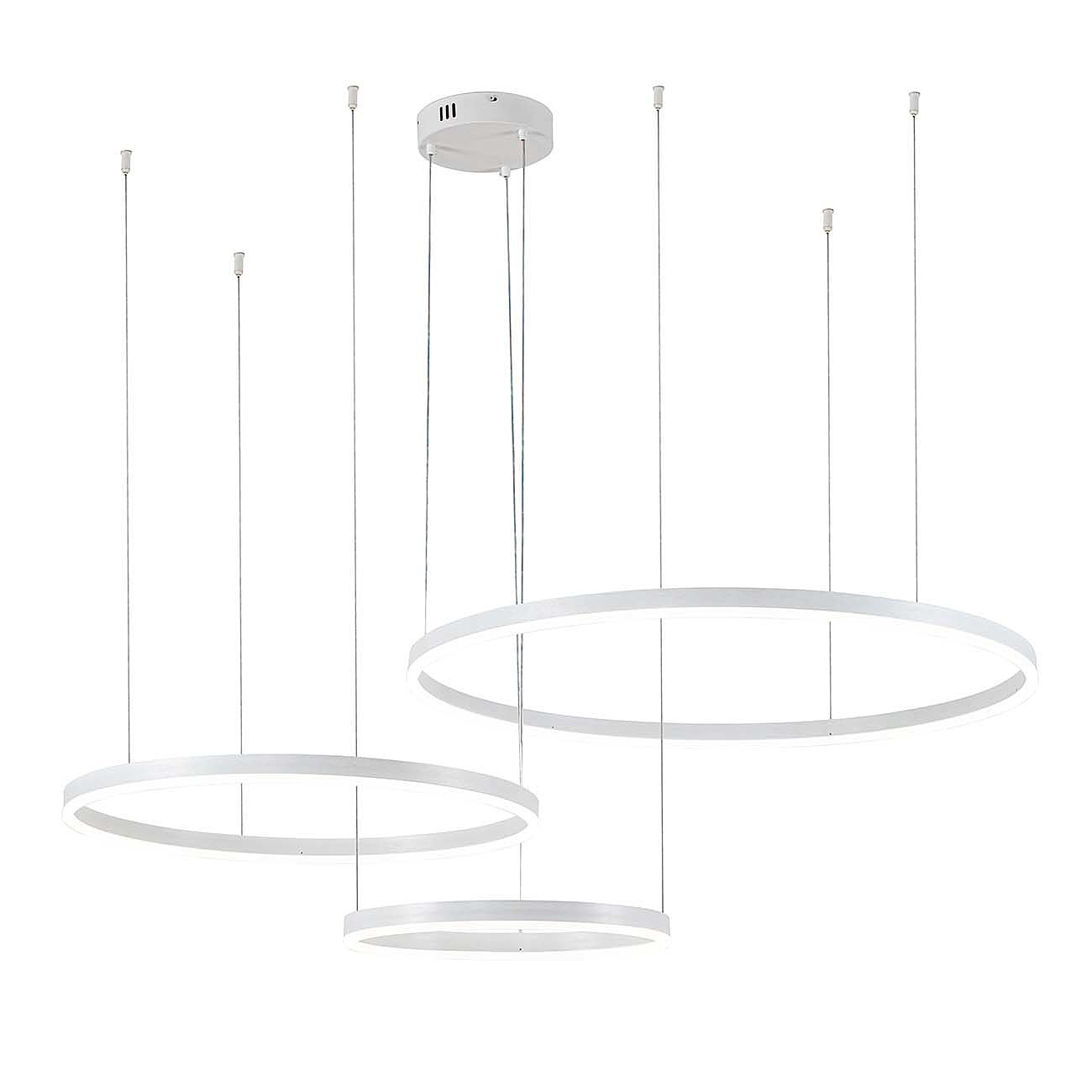 Космическая коллекция GALASS несет в себе образы вдохновения дизайнеров, напоминая форму эллиптических галактик. Светодиодные модели представляют собой изящную комбинацию из металла и акрила. Невидимые подвесы держат кольца драгоценных цветов, создавая иллюзию парения в воздухе. Современные LED светильники станут отличным дизайнерским решением для пространства в стиле модерн. Размер D400+D600+D800*140/1240 Мощность LED max 129 W / 10500 lm / 3000-5700 K Цвет БЕЛЫЙ Материал МЕТАЛЛ/АКРИЛ