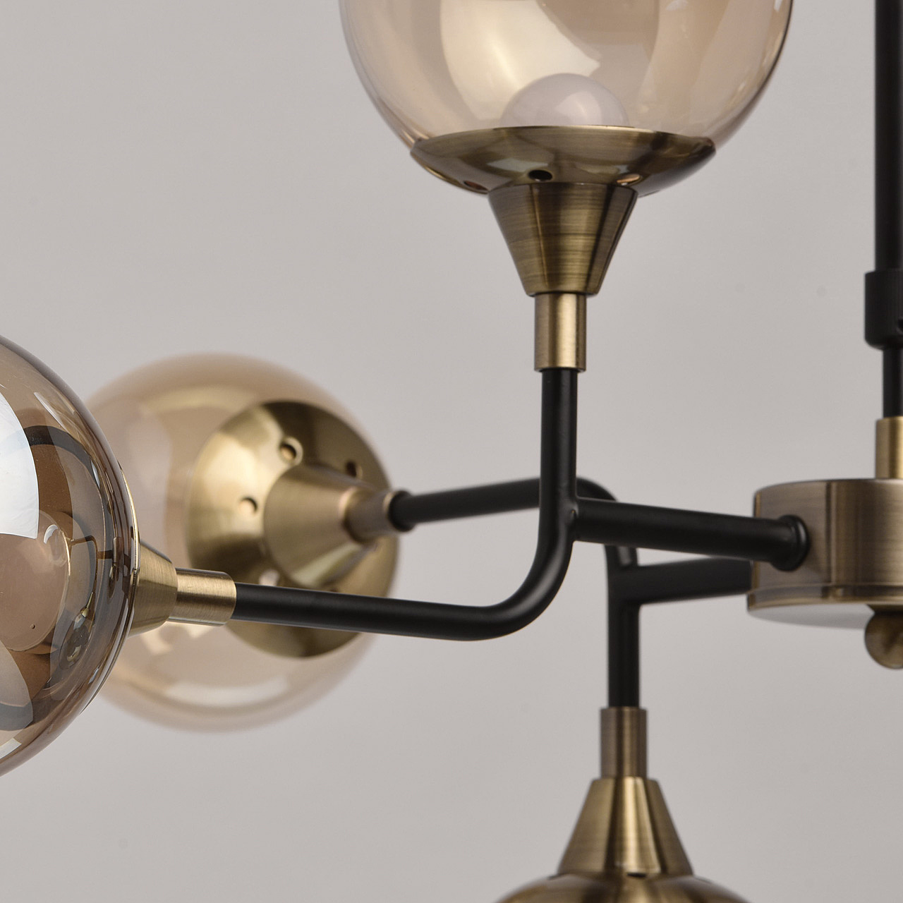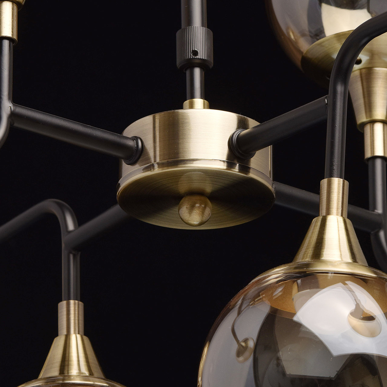 Оригинальная люстра из коллекции "Гамбург" - лучшее решение для интерьеров в стиле лофт. Металлическое основание матового чёрного цвета создает эффектный тандем в комбинации с оттенками центральной части и основанием плафонов, выполненных из металла цвета латуни. А стеклянные объемные плафоны привлекают нежным оттенком цвета шампань. Трендовое сочетание тонов, небанальные формы, смелые дизайнерские решения - в этом светильнике есть всё, чтобы стать достойным украшением современной обстановки.