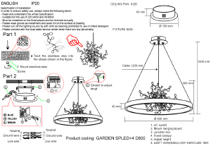 Допускается отличие страны-изготовителя, указанной в характеристиках. Линии производства могут находиться в нескольких государствах. Это не влияет на качество изготовления товара: все заводы данного бренда работают по общим стандартам, а готовые изделия проходят соответствующий контроль.Испания Коллекция Garden ЦветЦвет арматуры Хром Цвет Хром Материал арматуры Металл Материал декора Металлические кружки, стилизованные под ветви. РазмерыВысота (мм) 1300 Диаметр (мм) 800 Высота минимальная (мм) 300 Ширина (мм) 800 ЭлектрикаКоличество ламп (шт) 3 Цоколь LED, G9 Тип лампы Светодиодная Мощность лампы (Вт) 60 + 8 Цветовая температура 4000 Дополнительная информацияСтепень защиты (IP) IP20 Тип подвеса На тросах -