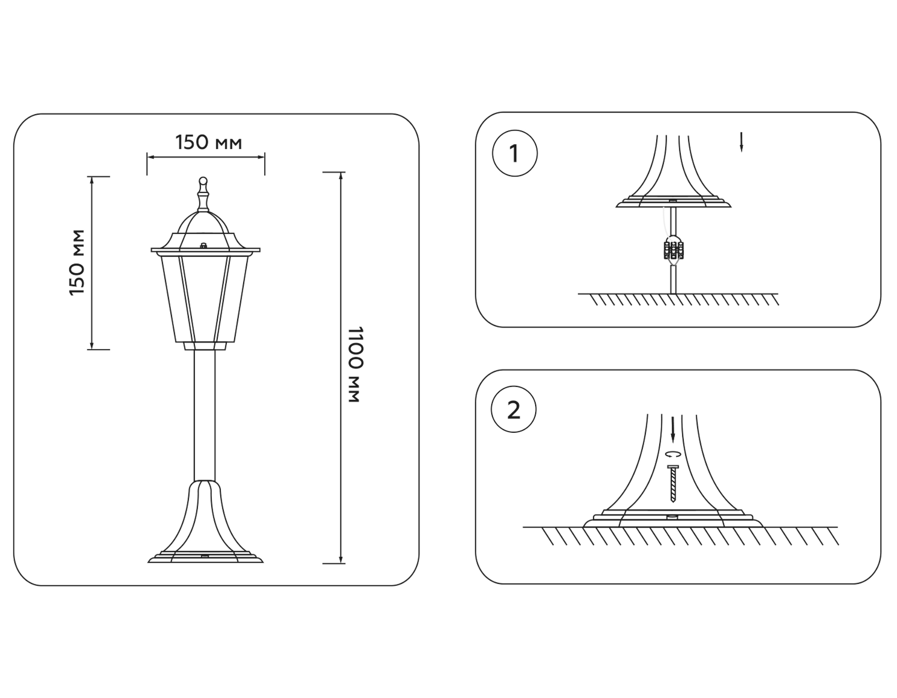 Допускается отличие страны-изготовителя, указанной в характеристиках. Линии производства могут находиться в нескольких государствах. Это не влияет на качество изготовления товара: все заводы данного бренда работают по общим стандартам, а готовые изделия проходят соответствующий контроль.Россия Коллекция Garden ЦветЦвет арматуры Черный, Прозрачный Цвет Черный Материал арматуры Металл, Стекло, Пластик РазмерыВысота (мм) 1100 Длина (мм) 300 Диаметр (мм) 150 Ширина (мм) 150 ЭлектрикаКоличество ламп (шт) 1 Цоколь E27 Мощность лампы (Вт) 40 Напряжение (В) 220 Дополнительная информацияСтепень защиты (IP) IP54 -