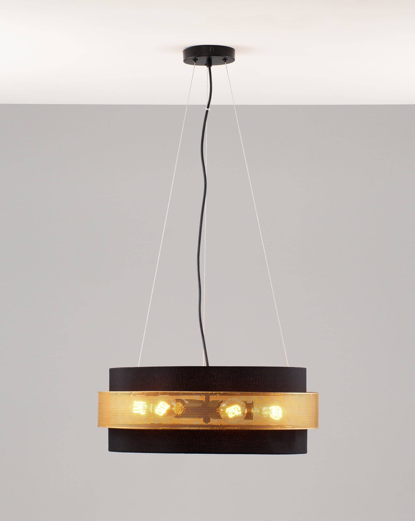 Допускается отличие страны-изготовителя, указанной в характеристиках. Линии производства могут находиться в нескольких государствах. Это не влияет на качество изготовления товара: все заводы данного бренда работают по общим стандартам, а готовые изделия проходят соответствующий контроль.Италия Коллекция Gela ЦветЦвет арматуры Матовый черный Цвет Черный Материал арматуры Металл Цвет декора Матовый Черный Цвет плафона золотой, матовый черный Материал плафона Текстиль РазмерыВысота (мм) 1200 Ширина (мм) 500 Глубина (мм) 500 ЭлектрикаКоличество ламп (шт) 6 Цоколь E27 Тип лампы Накаливания Лампочки в комплекте нет Мощность лампы (Вт) 60 Общая мощность (Вт) 360 Напряжение (В) 220-240V Площадь освещения 6 Дополнительная информацияСпособ крепления на планку Степень защиты (IP) 20 Вес (Кг) 2 Тип подвеса На тросах -