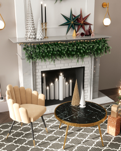 Журнальный столик Гелиос 80х80, стекло черный мрамор, ножки сталь золото