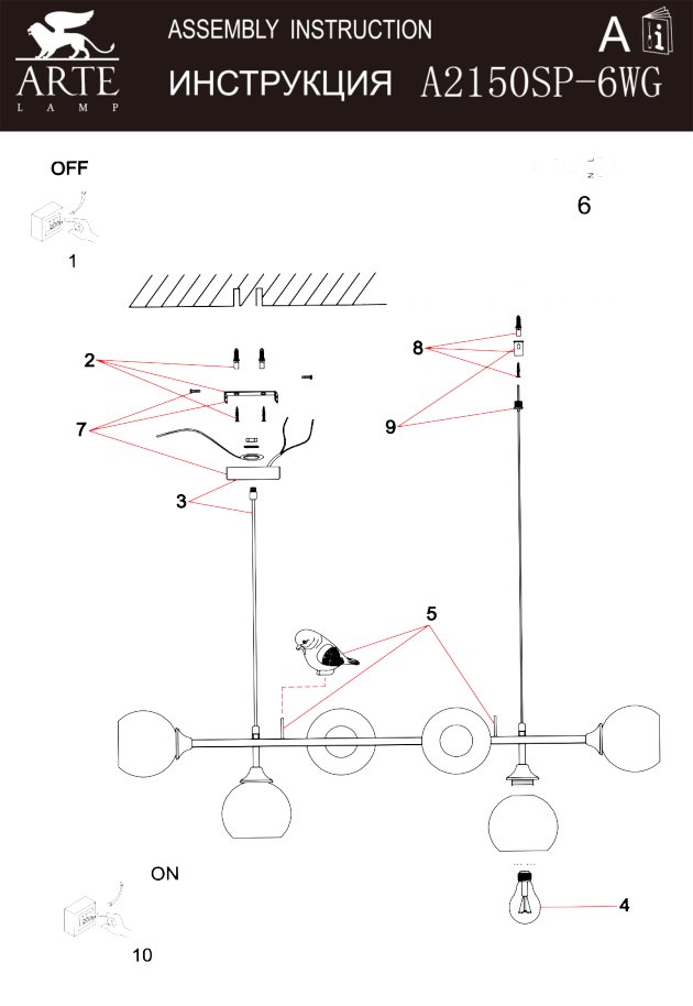 Производитель Arte Lamp Артикул A2150SP-6WG Страна