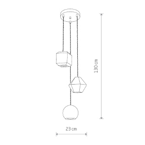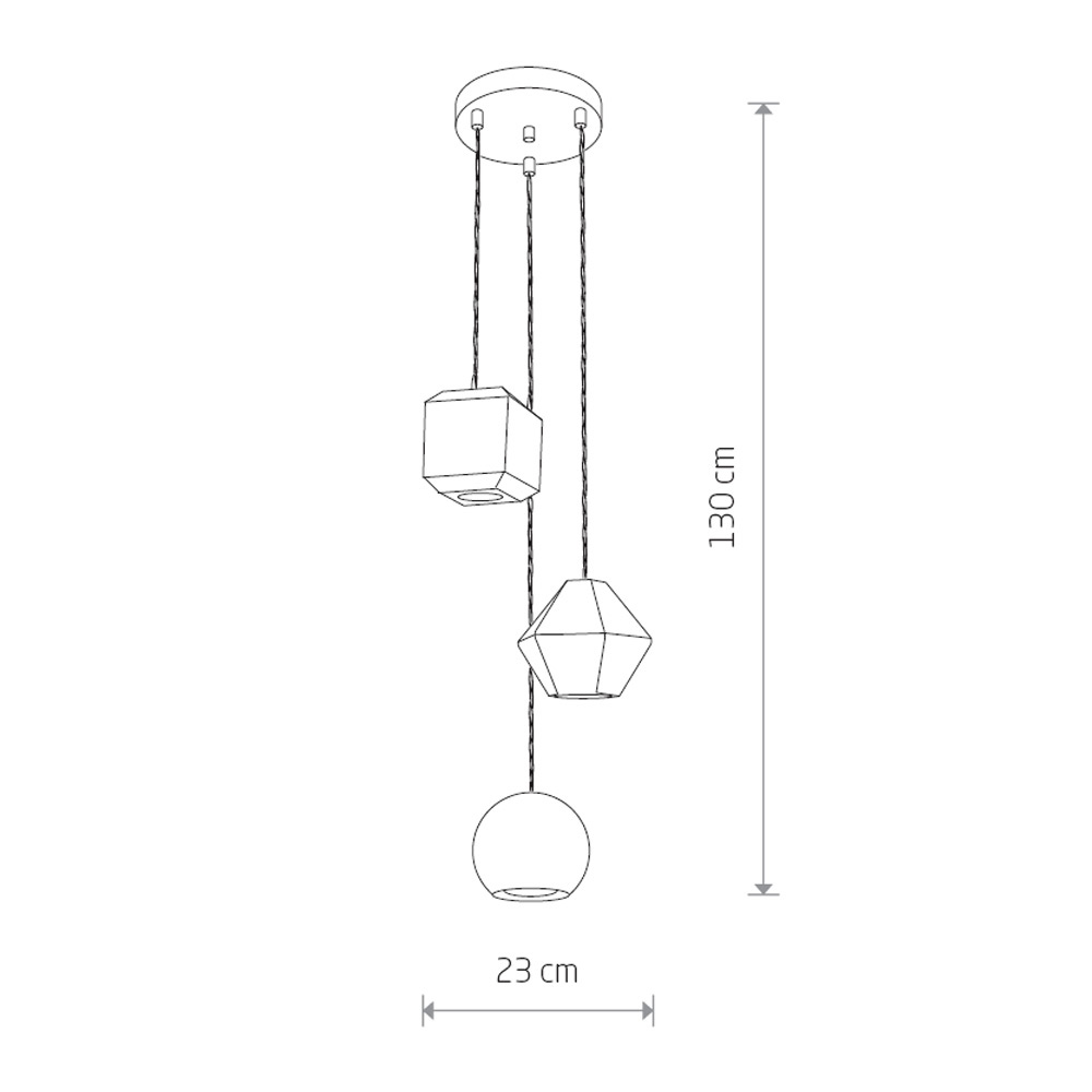 Допускается отличие страны-изготовителя, указанной в характеристиках. Линии производства могут находиться в нескольких государствах. Это не влияет на качество изготовления товара: все заводы данного бренда работают по общим стандартам, а готовые изделия проходят соответствующий контроль.Польша Коллекция Geometric ЦветЦвет арматуры Серый Цвет Коричневый Материал арматуры Сталь Цвет плафона Серый Материал плафона Бетон РазмерыВысота (мм) 1300 Диаметр (мм) 150 Ширина (мм) 150 ЭлектрикаКоличество ламп (шт) 3 Цоколь GU10 Тип лампы Галогеновая Мощность лампы (Вт) 35 Общая мощность (Вт) 105 Напряжение (В) 220 Дополнительная информацияСтепень защиты (IP) IP20 Место установки на потолок Вес (Кг) 4,36 Тип подвеса На тросах Количество подвесов Много подвесных элементов -