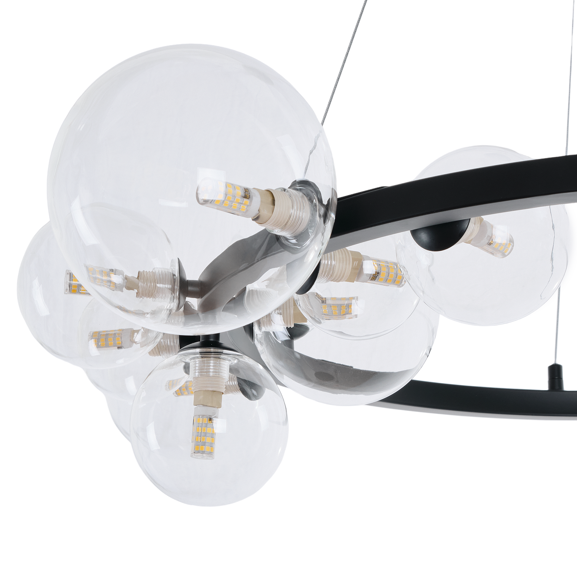 Допускается отличие страны-изготовителя, указанной в характеристиках. Линии производства могут находиться в нескольких государствах. Это не влияет на качество изготовления товара: все заводы данного бренда работают по общим стандартам, а готовые изделия проходят соответствующий контроль.Россия Коллекция George ЦветЦвет арматуры Черный Цвет Черный Материал арматуры Металл Цвет плафона прозрачный Материал плафона Стекло РазмерыВысота (мм) 1200 Длина (мм) 850 Диаметр (мм) 850 Высота минимальная (мм) 220 Ширина (мм) 850 ЭлектрикаКоличество ламп (шт) 14 Цоколь G9 Лампочки в комплекте Нет в комплекте Мощность лампы (Вт) 25 Общая мощность (Вт) 350 Напряжение (В) 220 Дополнительная информацияСпособ крепления Планка Вес (Кг) 3,5 Тип подвеса На тросах -
