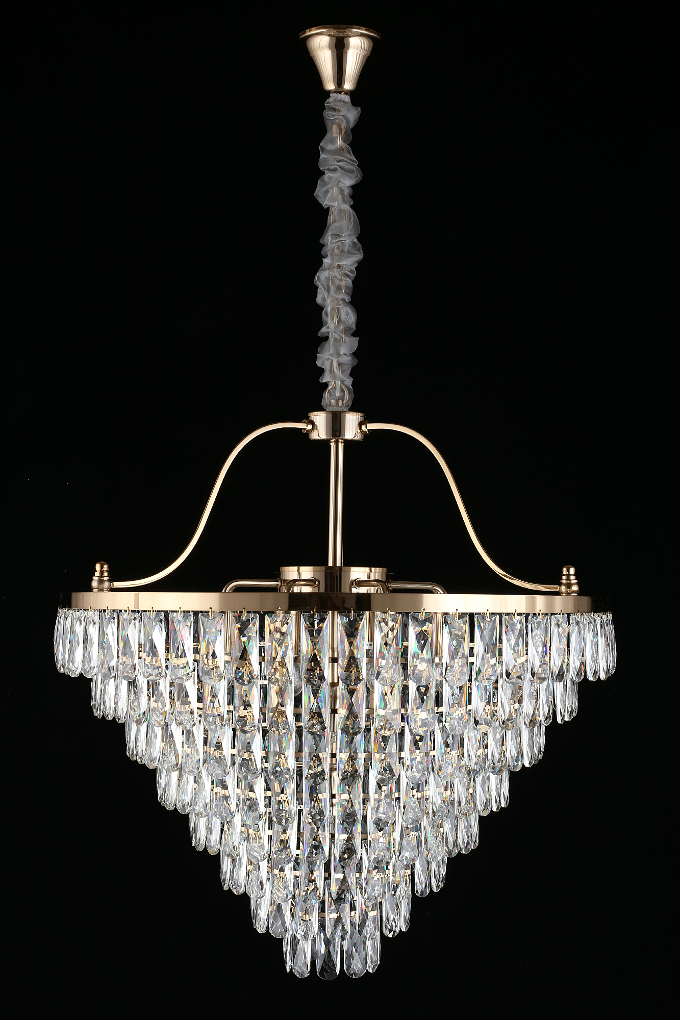 Допускается отличие страны-изготовителя, указанной в характеристиках. Линии производства могут находиться в нескольких государствах. Это не влияет на качество изготовления товара: все заводы данного бренда работают по общим стандартам, а готовые изделия проходят соответствующий контроль.Польша Коллекция Gerta ЦветЦвет арматуры Золото Цвет Золото Материал арматуры Металл Цвет декора прозрачный Материал декора Хрусталь РазмерыВысота (мм) 1800 Диаметр (мм) 700 Высота минимальная (мм) 950 Ширина (мм) 700 ЭлектрикаКоличество ламп (шт) 13 Цоколь E14 Лампочки в комплекте Нет в комплекте Мощность лампы (Вт) 40 Общая мощность (Вт) 520 Световой поток 5460 Дополнительная информацияСпособ крепления Крюк Степень защиты (IP) IP20 Вес (Кг) 16 Тип подвеса На цепи -