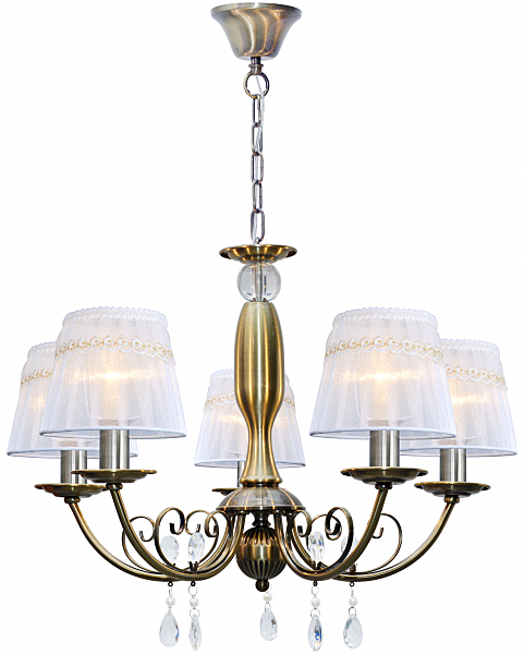 Допускается отличие страны-изготовителя, указанной в характеристиках. Линии производства могут находиться в нескольких государствах. Это не влияет на качество изготовления товара: все заводы данного бренда работают по общим стандартам, а готовые изделия проходят соответствующий контроль.Россия Коллекция Gertrude ЦветЦвет арматуры Античная бронза Цвет Бронза Материал арматуры Металл, Текстиль, Хрусталь РазмерыВысота (мм) 1200 Диаметр (мм) 610 Ширина (мм) 610 ЭлектрикаКоличество ламп (шт) 5 Цоколь E14 Мощность лампы (Вт) 40 Напряжение (В) 220 Дополнительная информацияСтепень защиты (IP) IP20 Вес (Кг) 2,21 Тип подвеса На цепи -