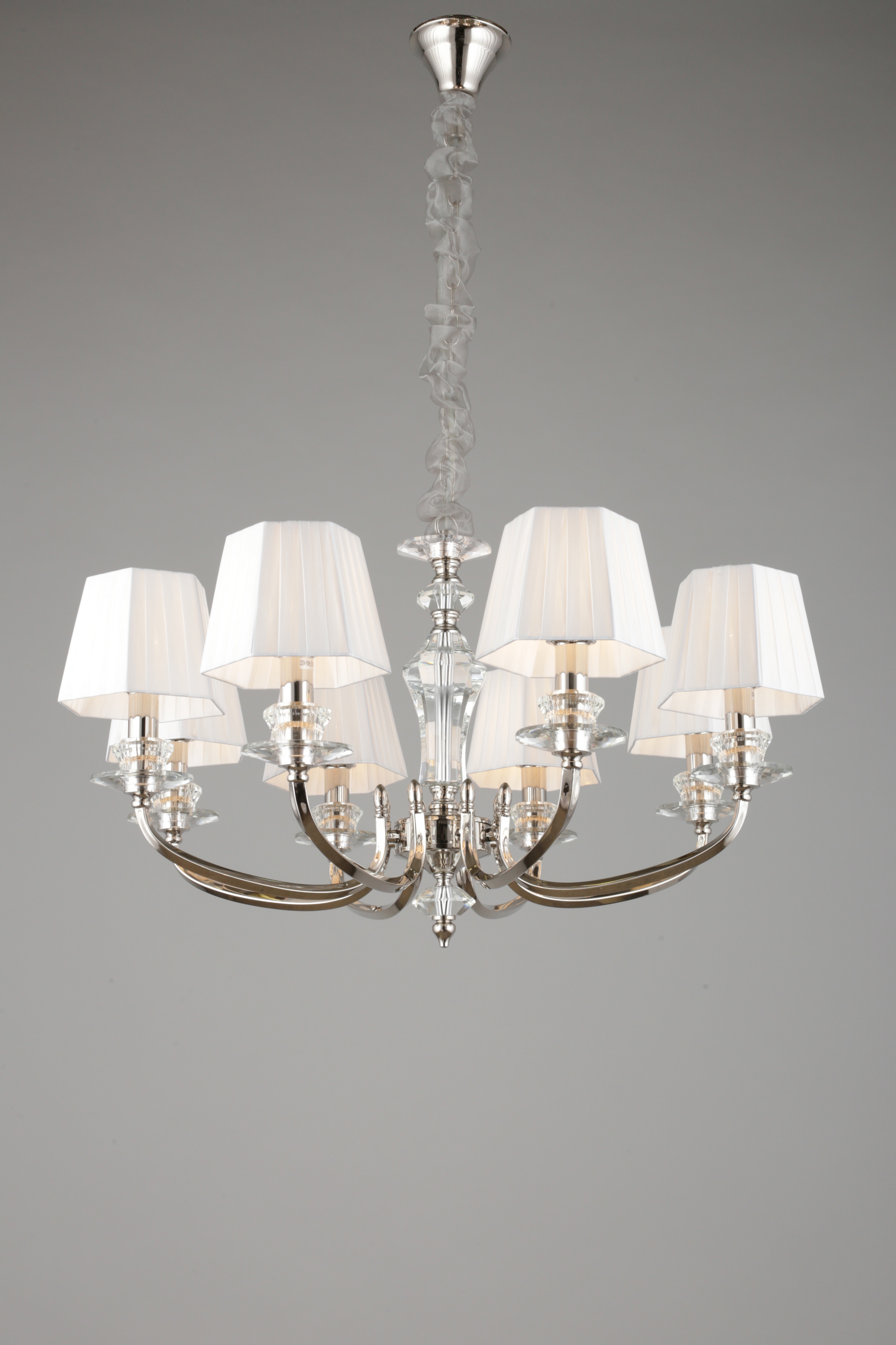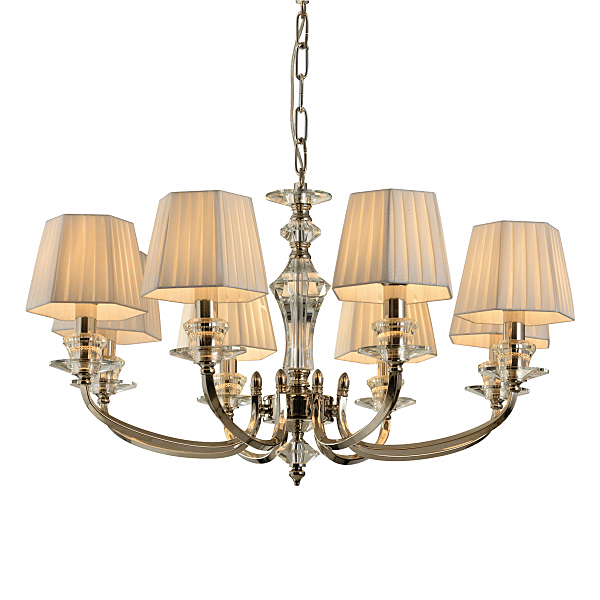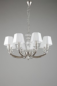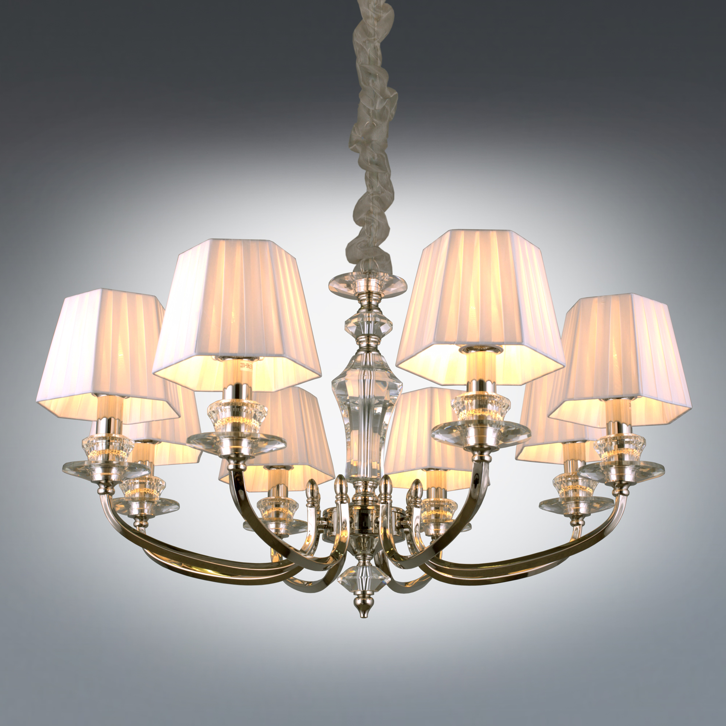 Допускается отличие страны-изготовителя, указанной в характеристиках. Линии производства могут находиться в нескольких государствах. Это не влияет на качество изготовления товара: все заводы данного бренда работают по общим стандартам, а готовые изделия проходят соответствующий контроль.Китай Коллекция Giardino ЦветЦвет арматуры Хром Цвет Хром Материал арматуры Металл, Стекло Цвет декора прозрачный Цвет плафона Белый Материал декора Хрусталь Материал плафона Ткань РазмерыВысота (мм) 1510 Диаметр (мм) 780 Высота минимальная (мм) 510 Ширина (мм) 780 ЭлектрикаКоличество ламп (шт) 8 Цоколь E14 Мощность лампы (Вт) 40 Напряжение (В) 220 Дополнительная информацияСпособ крепления Крюк Тип подвеса На цепи -