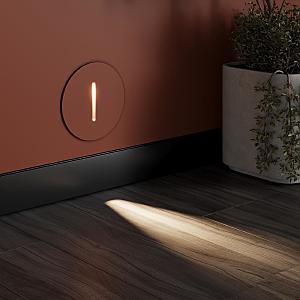 Если нужен светильник для лестниц в цвет стен, рекомендуем использование гипсовых встраиваемых подсветок GIPS c углом луча 20градусов, которые можно красить и создавать стильное пространство.У круглого светильника будет выделяться обод из стены.