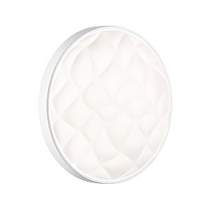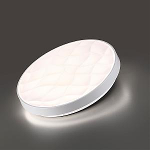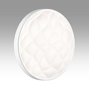 Светильник 7672/DL линии GITUM состоит из металлического основания (базы) и пластикового рассеивателя. Материал рассеивателя - высококачественный пластик марки PMMA 2.0 белого цвета с матовой поверхностью. Пластик обеспечивает светильнику равномерное рассеивание и хорошее светопропускание. Форма плафона: круглая, декорирована рельефной структурой и ободом из пластика белого цвета. Степень защиты IP43 позволяет использовать светильник в определенных зонах влажных помещений. В комплект входит заменяемый LED модуль с линзами, мощностью 48Вт, которая соответствует лампе накаливания 460Вт. Источник света имеет комфортную цветовую температуру 4000К (белый свет).