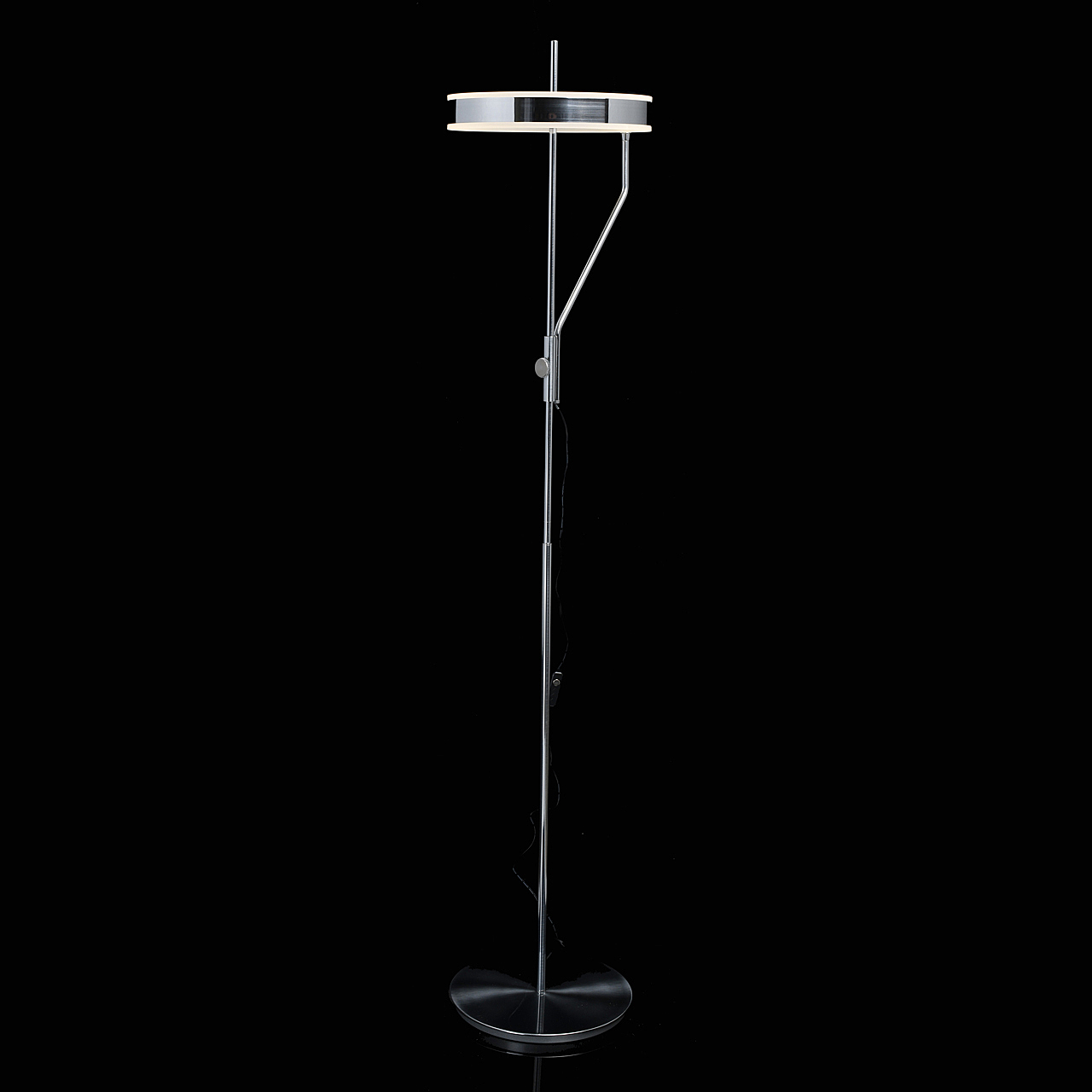 Дизайн в модной стилистике селфи - света.Светодиоды высокой мощности энергоэффективны и безопасны.Спот-плафон кастомизируется по высоте, наклону в 90 градусов и вокруг оси, настраивает освещение.Устойчивое основание универсального цвета хрома.Диммер яркости и функция запоминания последнего выбранного режима управляется сенсорным выключателем на шнуре.