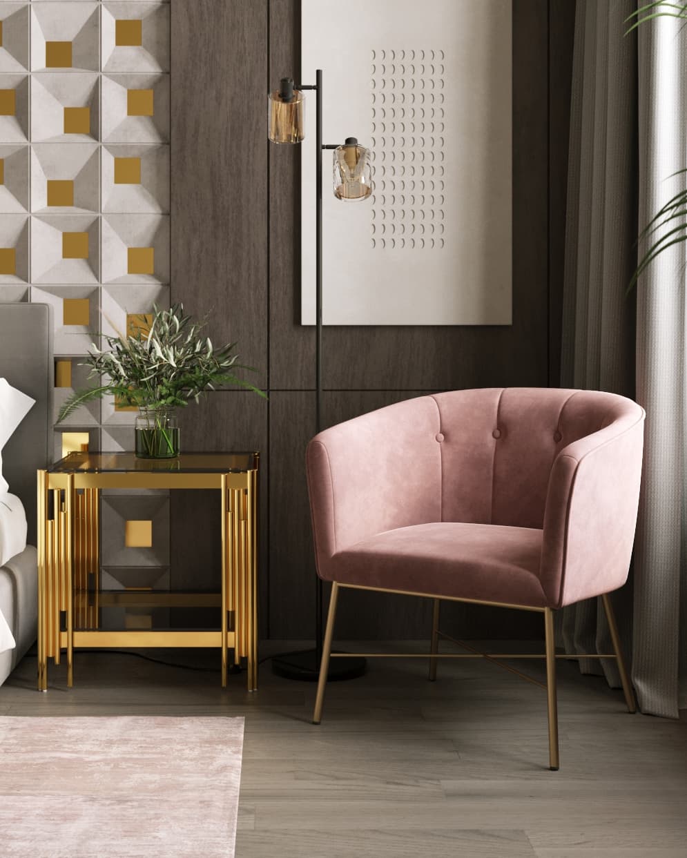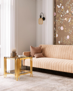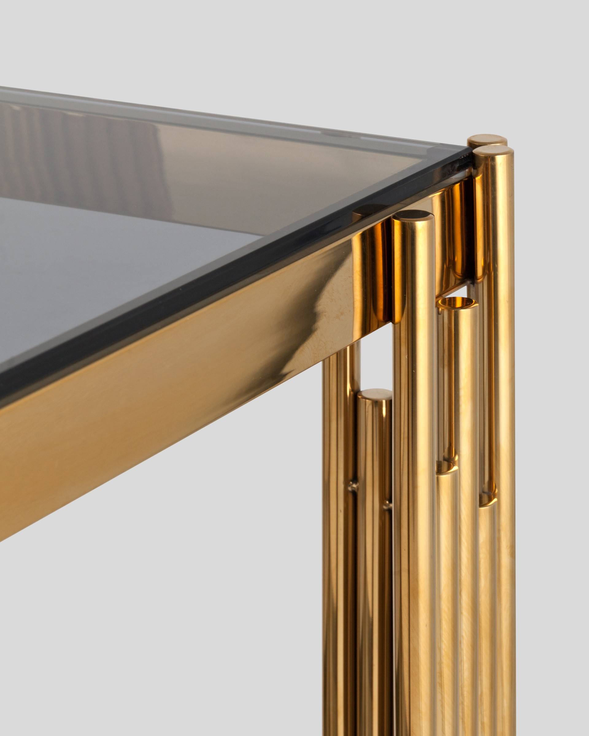 Стол журнальный 55*55 ГЭТСБИ сталь золото стекло smoke