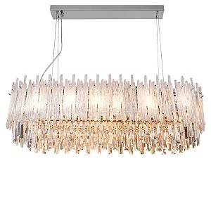 Допускается отличие страны-изготовителя, указанной в характеристиках. Линии производства могут находиться в нескольких государствах. Это не влияет на качество изготовления товара: все заводы данного бренда работают по общим стандартам, а готовые изделия проходят соответствующий контроль.Италия Коллекция Glacier ЦветЦвет арматуры Хром Цвет Хром Материал арматуры Металл Цвет плафона Белый, прозрачный Материал плафона Стекло, Хрусталь РазмерыВысота (мм) 300 Длина (мм) 1050 Ширина (мм) 350 ЭлектрикаКоличество ламп (шт) 14 Цоколь E14 Мощность лампы (Вт) 60 Напряжение (В) 220 Дополнительная информацияТип подвеса На тросах -