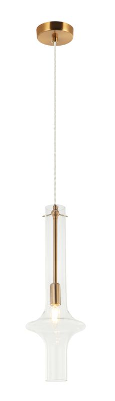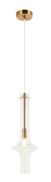 Светильник подвесной из коллекции Glaso выполнен из металла, гальванизированного в цвет бронзы, и декорирован вытянутым плафоном необычной формы из прозрачного стекла. Провод на подвесе выполнен из перекрученного прозрачного шнура в винтажном стиле. Премиальное качество и неповторимыи? дизаи?н светильников идеально подои?дут как в классические, так и современные дизайнерские интерьеры.