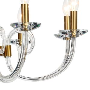 Люстра подвесная из коллекции Glass выполнена из металла, гальванизированного в цвет бронзы. Стеклянные рожки выдуваются вручную. Декоративные розетки выполнены из массива хрусталя ручной калибровки. Премиальное качество и неповторимыи? дизаи?н светильников идеально подои?дут как в классические, так и современные интерьеры.
