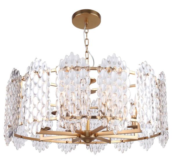 Допускается отличие страны-изготовителя, указанной в характеристиках. Линии производства могут находиться в нескольких государствах. Это не влияет на качество изготовления товара: все заводы данного бренда работают по общим стандартам, а готовые изделия проходят соответствующий контроль.Германия Коллекция Glazgo ЦветЦвет арматуры Бронза Цвет Золото Материал арматуры Металл Цвет плафона прозрачный Материал плафона Стекло РазмерыВысота (мм) 400-710 Диаметр (мм) 710 Высота минимальная (мм) 400 Ширина (мм) 710 ЭлектрикаКоличество ламп (шт) 8 Цоколь E14 Лампочки в комплекте нет Мощность лампы (Вт) 40 Напряжение (В) 220 Площадь освещения 21 Дополнительная информацияСпособ крепления Планка Степень защиты (IP) IP20 Вес (Кг) 14,88 Диммирование Нет Тип подвеса На цепи -