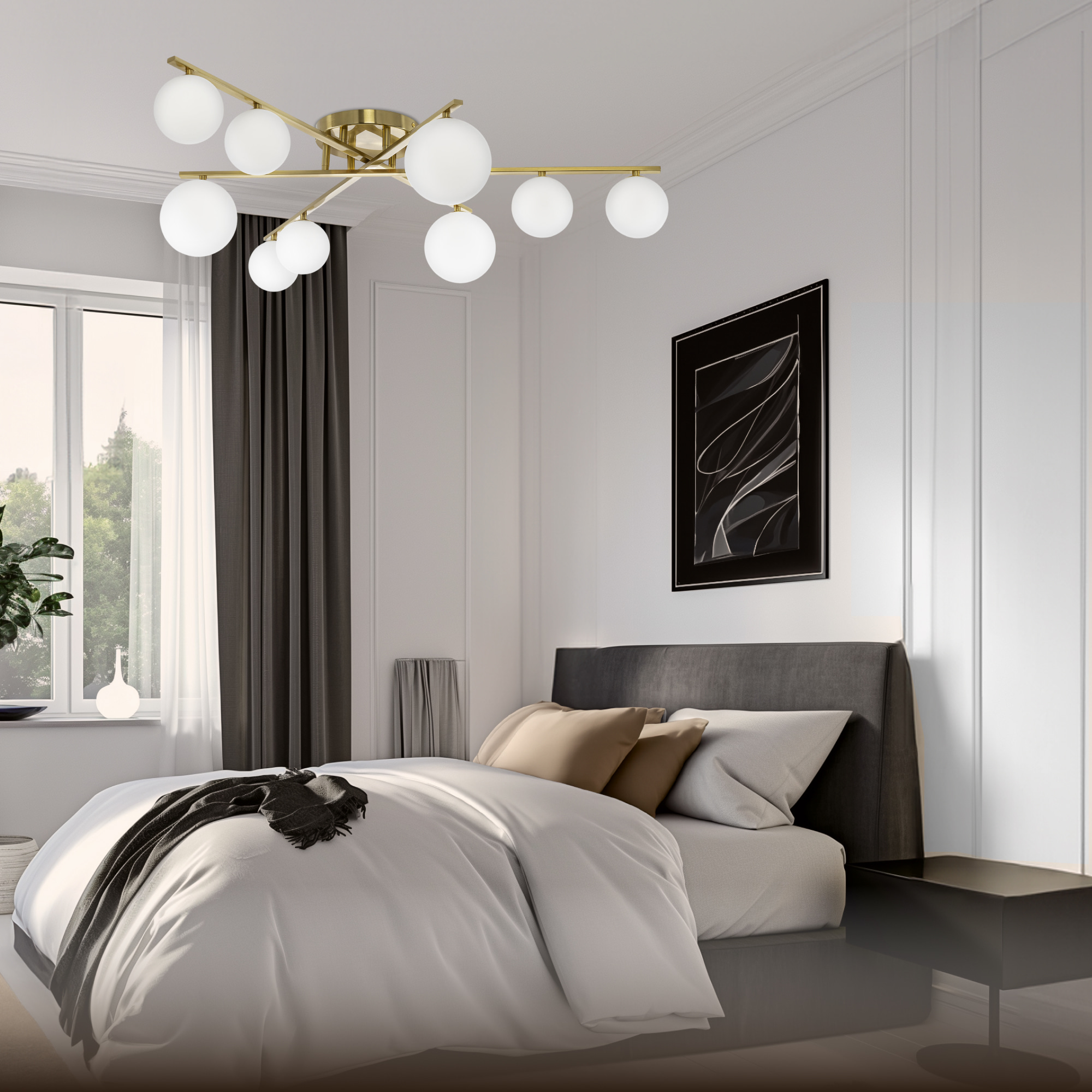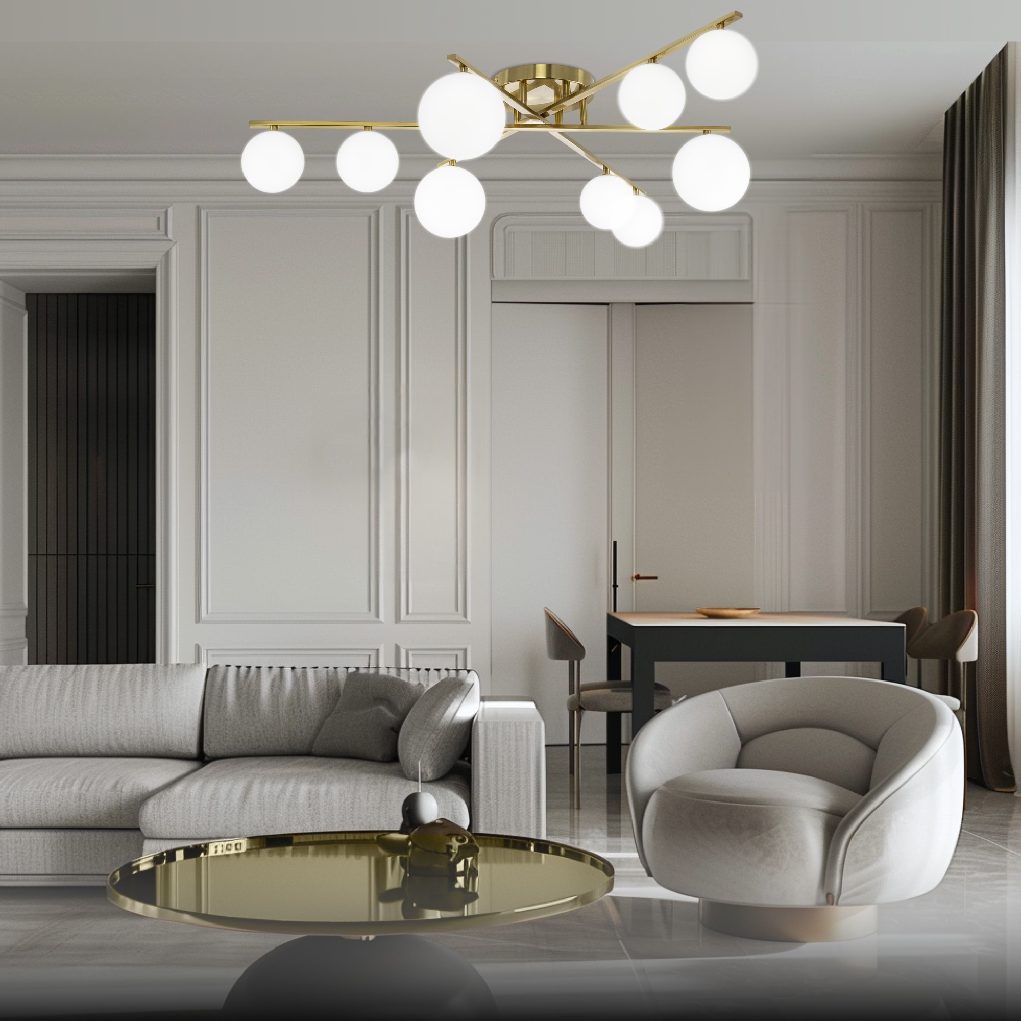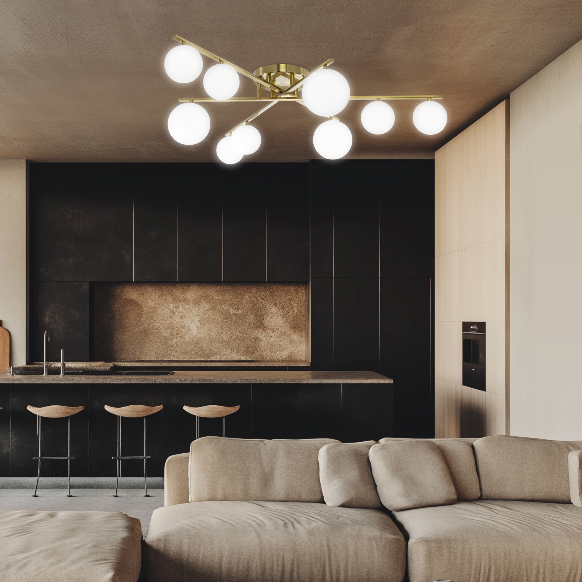Допускается отличие страны-изготовителя, указанной в характеристиках. Линии производства могут находиться в нескольких государствах. Это не влияет на качество изготовления товара: все заводы данного бренда работают по общим стандартам, а готовые изделия проходят соответствующий контроль.Дания Коллекция Glob ЦветЦвет арматуры Бронза Цвет Бронза Материал арматуры Металл Цвет плафона Белый Материал плафона Стекло РазмерыВысота (мм) 220 Диаметр (мм) 1000 Ширина (мм) 1000 ЭлектрикаКоличество ламп (шт) 9 Цоколь G9 Тип лампы Светодиодные Мощность лампы (Вт) 135 Общая мощность (Вт) 135 Световой поток 5400 Дополнительная информацияСпособ крепления Планка Степень защиты (IP) IP20 -